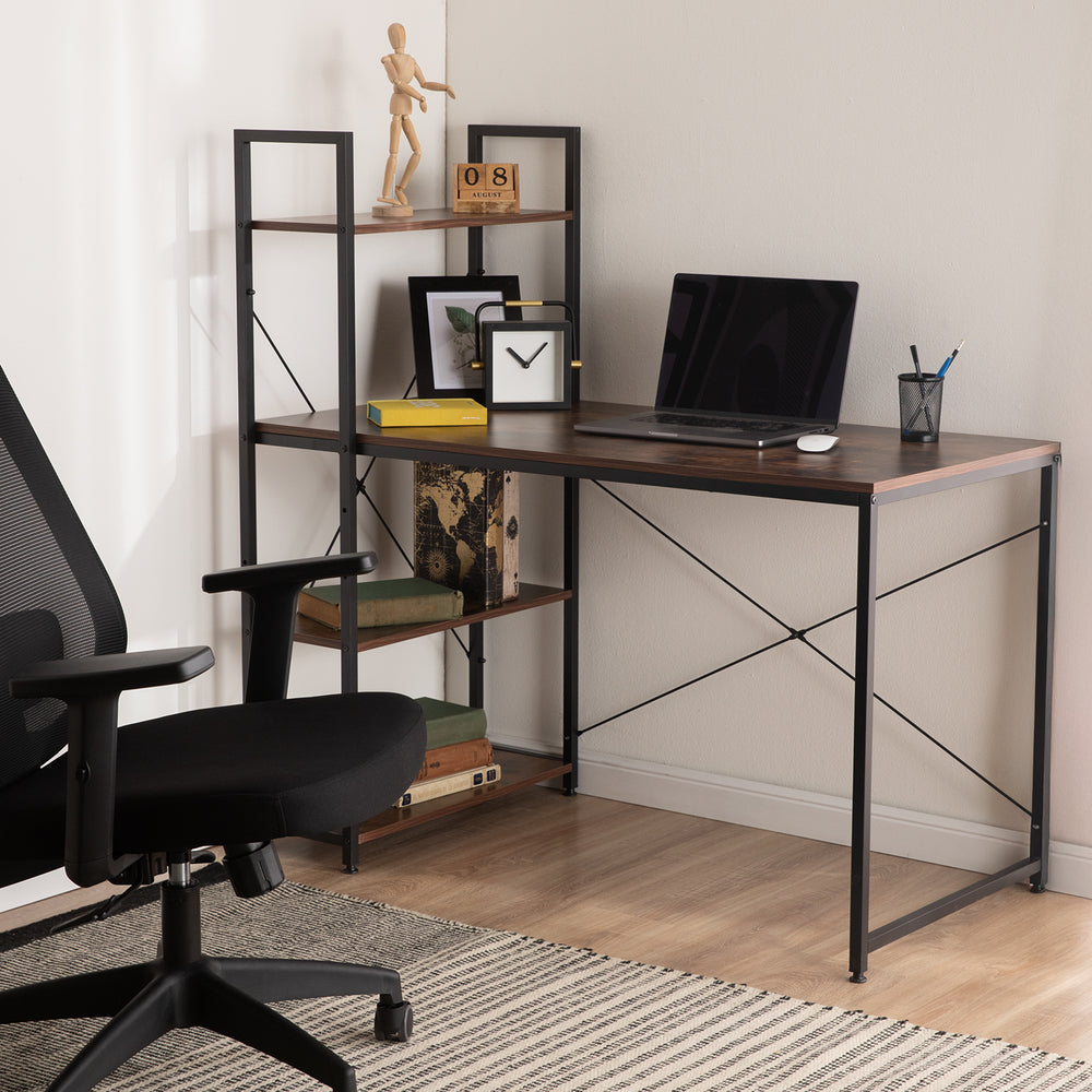 Escritorio Estilo Industrial con Estantería Lateral Desk 4 Caoba