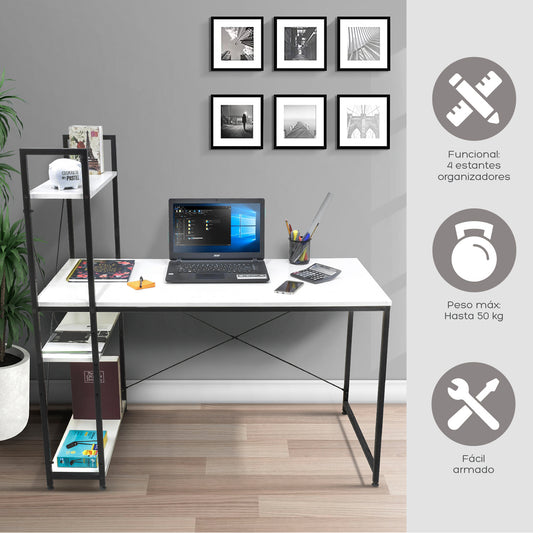 Escritorio Estilo Industrial Estantería Lateral Desk 4 Blanco