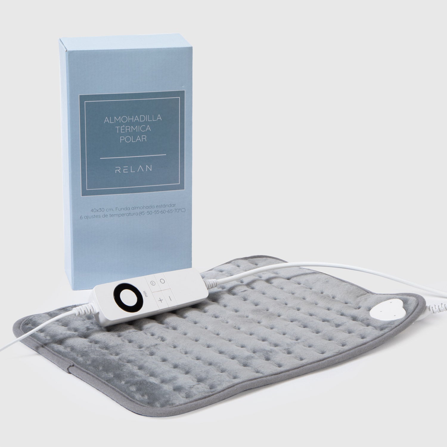 La Almohadilla Eléctrica By Relan es un accesorio de descanso que no puede faltar en tu hogar. Confeccionada en polar térmico 100% poliéster, es apta para camas de una plaza y ofrece un excelente nivel de comodidad y calor. Gracias a sus 6 ajustes de temperatura con indicador LED, podrás elegir la intensidad del calor que necesites en un rango que va desde los 30 hasta los 40ºC. Además, cuenta con 3 ajustes de tiempo, de 30, 60 y 90 minutos, para que puedas programarla a tu gusto y sin preocupaciones.
