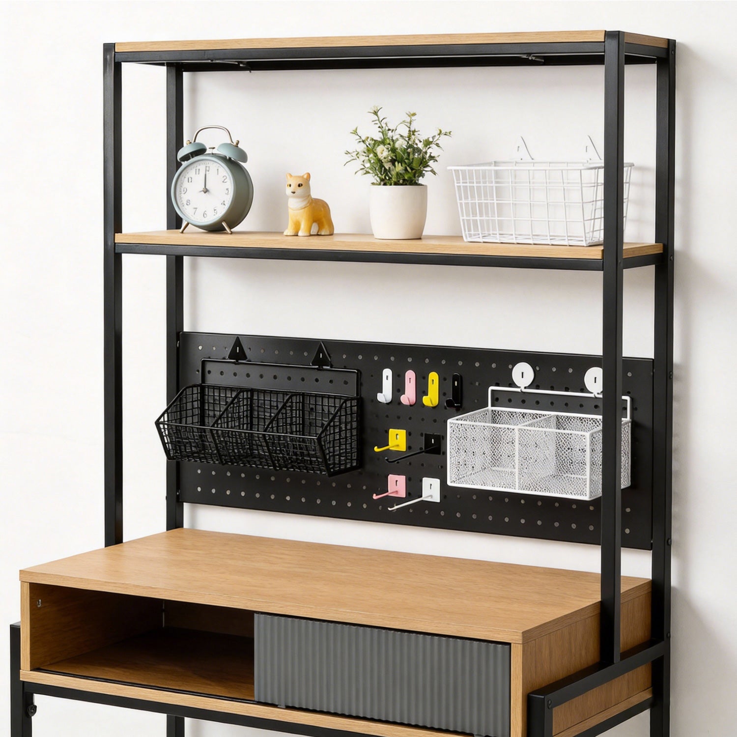 - Cuenta con panel organizador perforado, ideal para colgar y organizar accesorios, pegar recordatorios y mucho más.