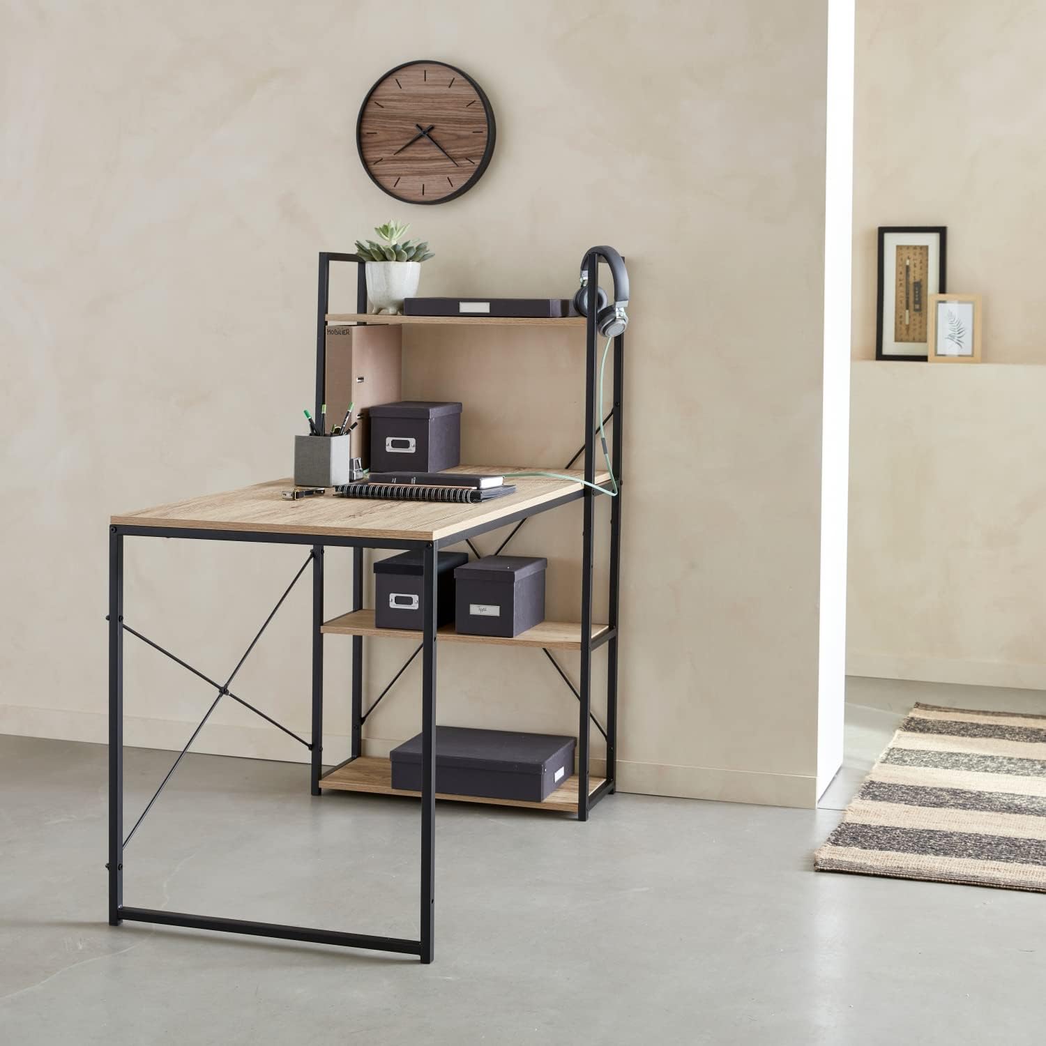 Escritorio Estilo Industrial con Estantería Lateral Desk 4 Natural