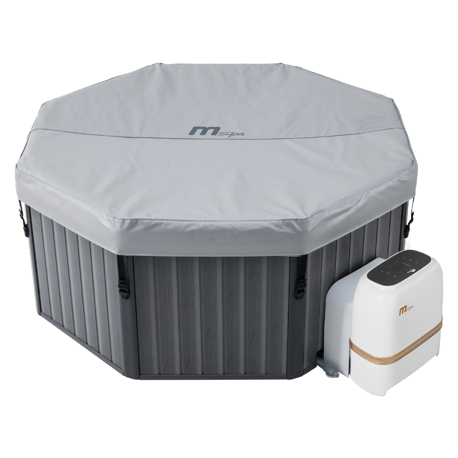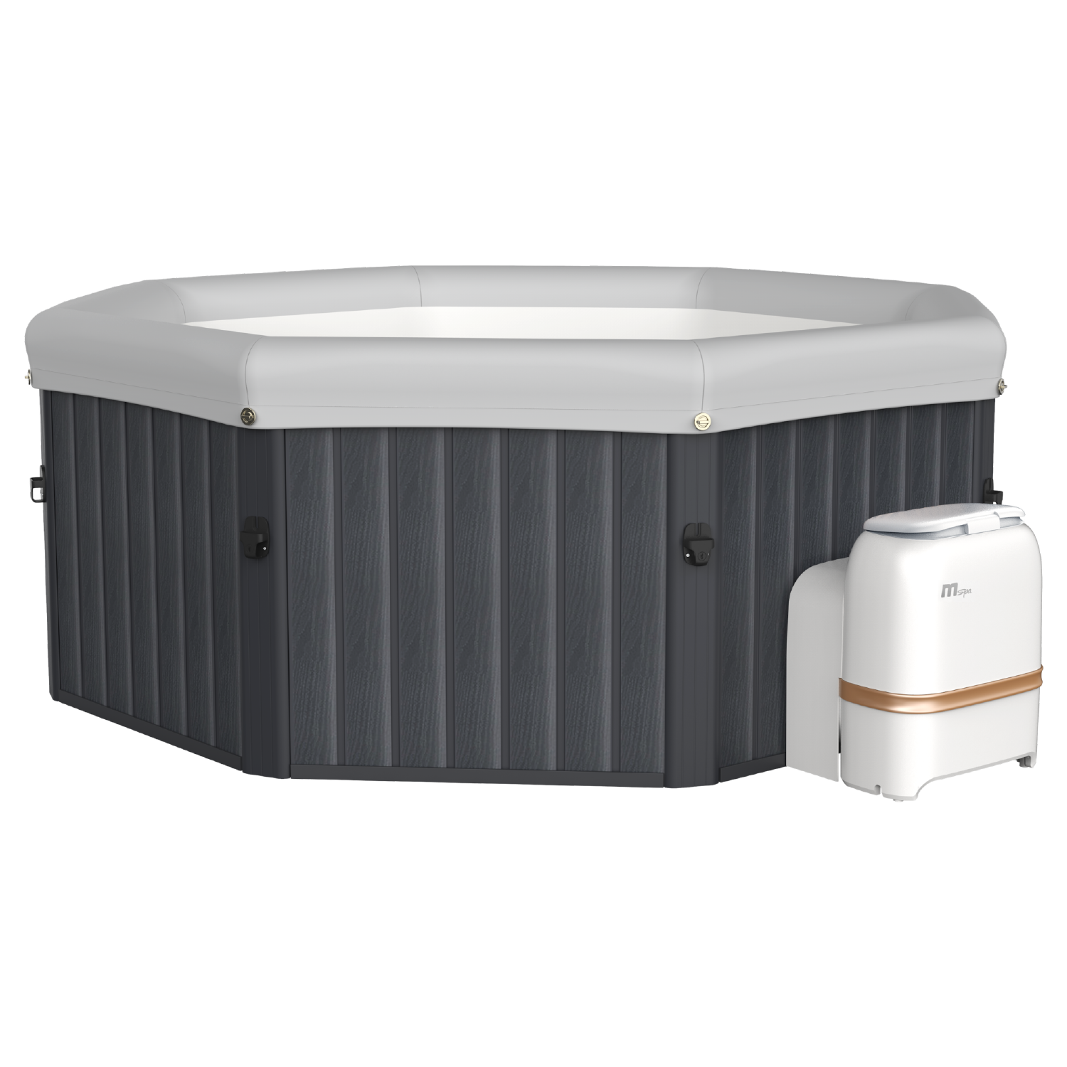 Experimenta el lujo puro: Con un diseño limpio, contemporáneo y rindiendo homenaje a los diseños de spa acrílicos tradicionales. Los paneles con textura de madera de alta calidad son duraderos y, al mismo tiempo, ligeros y fáciles de mover. El esquema de color gris plateado neutro hace que este spa combine a la perfección con la decoración y el diseño de tu hogar.