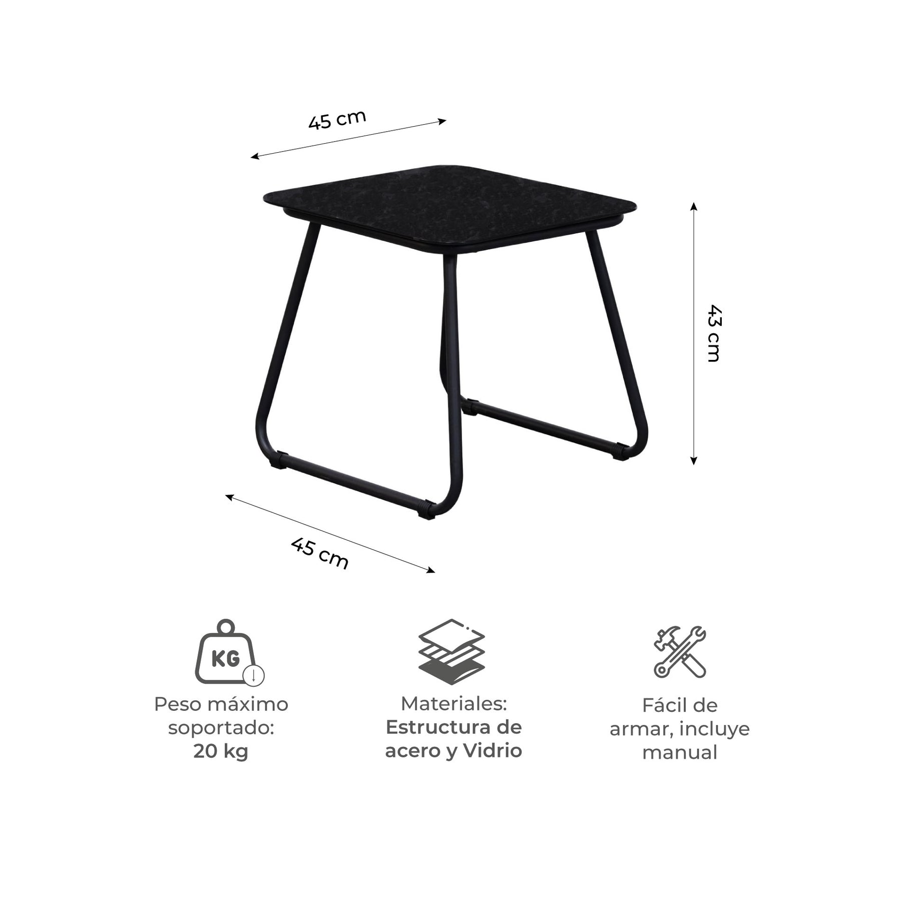 - Set de exterior para 2 personas, incluye una mesa auxiliar y 2 sillas