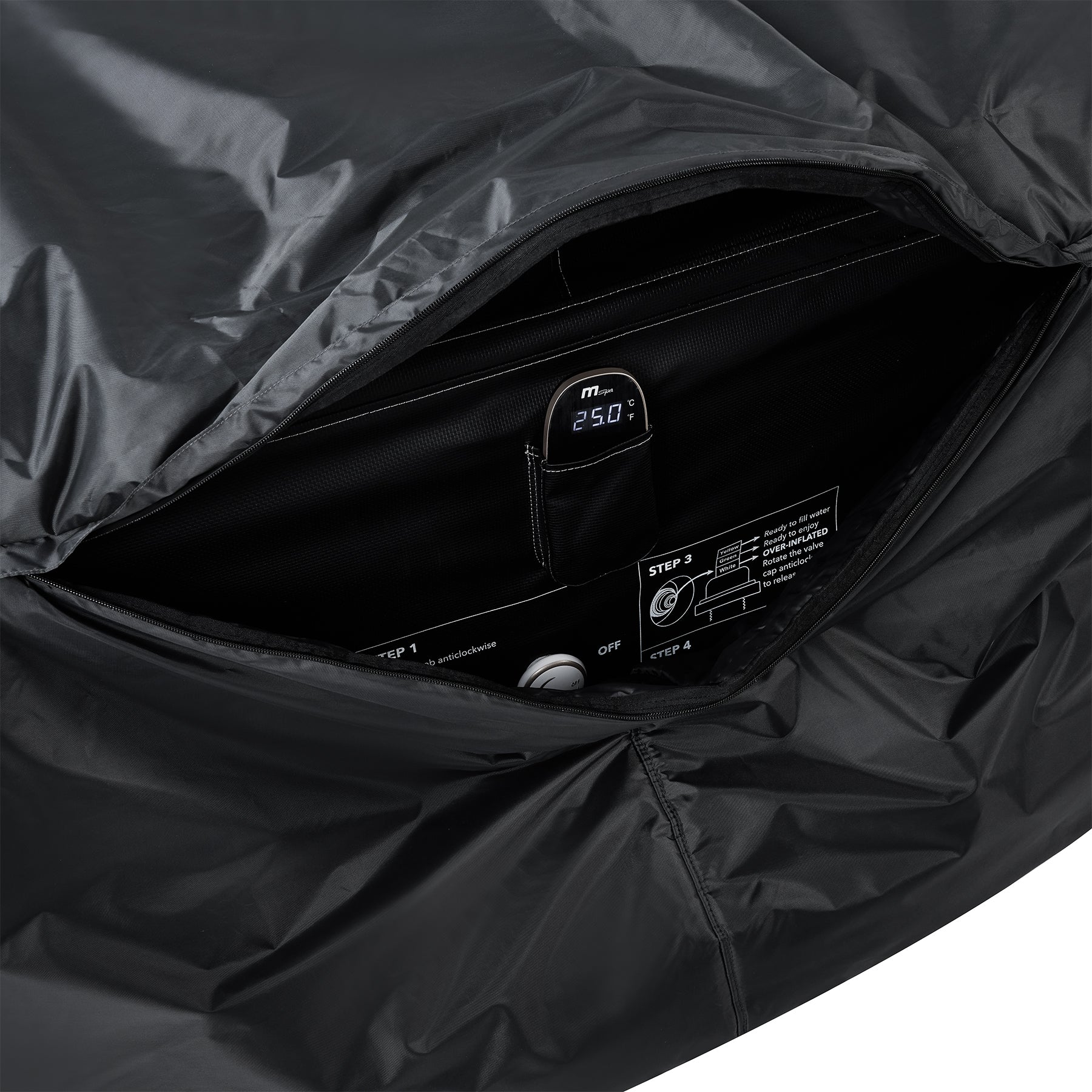 - La cubierta térmica del spa minimiza la pérdida de calor y mantiene la temperatura del agua, reduciendo el consumo de energía y los costos de calefacción.