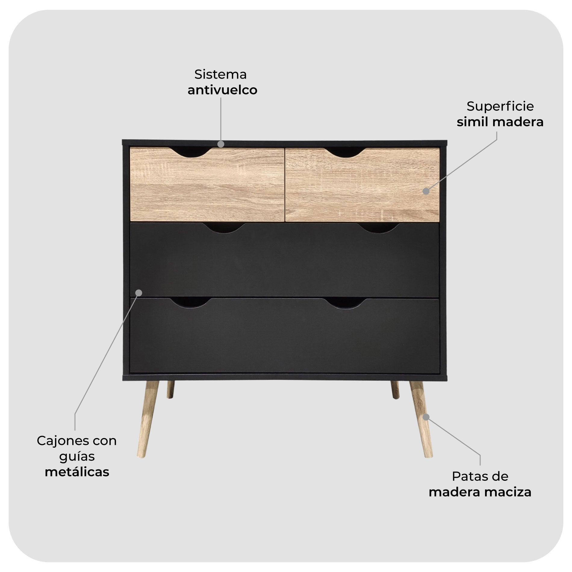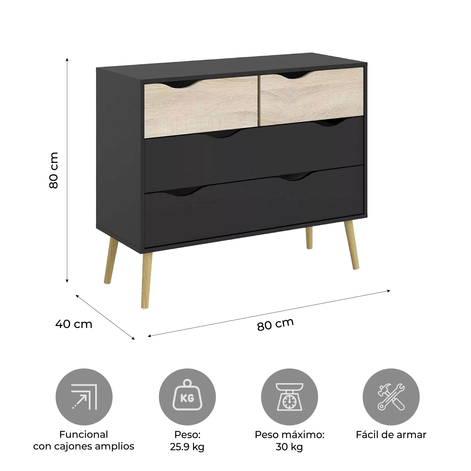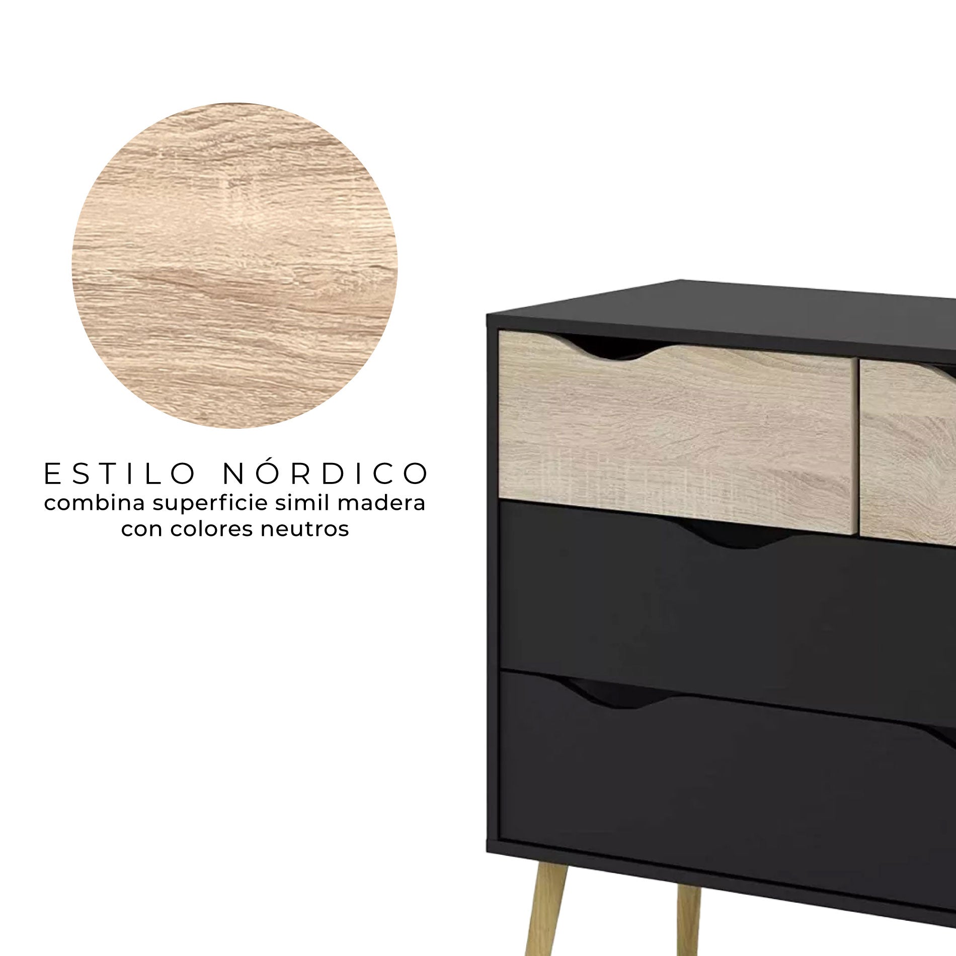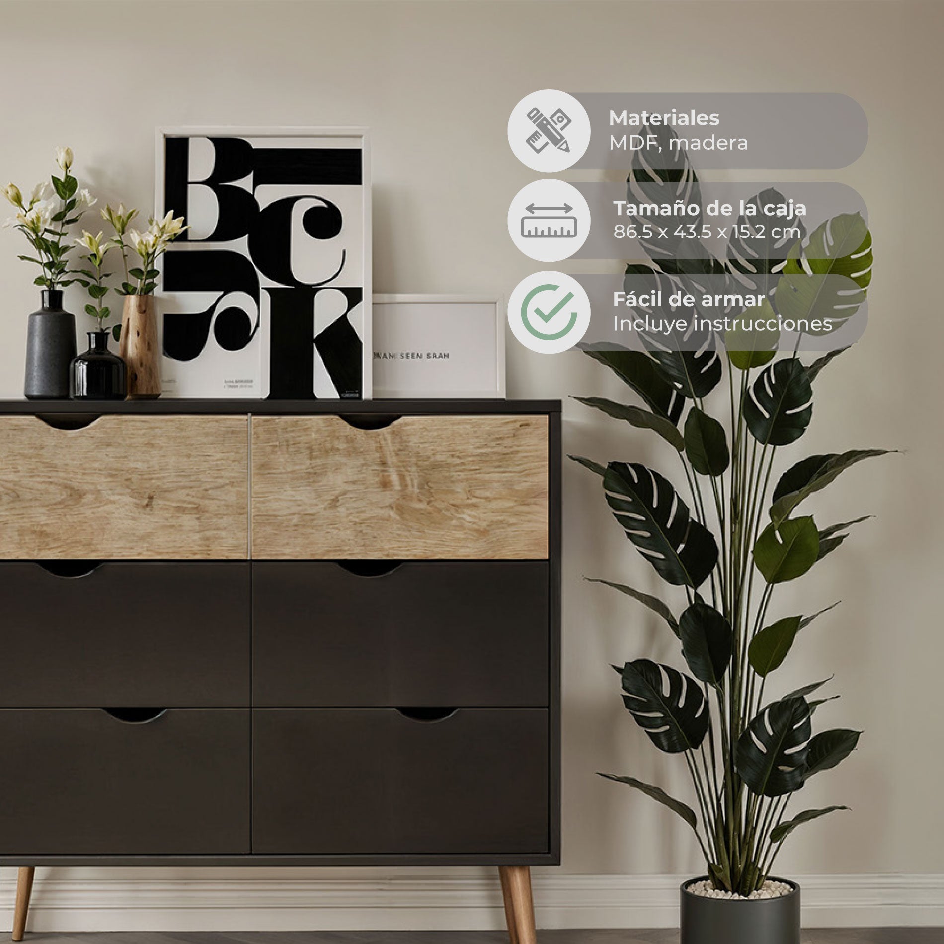 Disfruta de la práctica y versátil Cómoda ALOE BLACK by Top Living, ideal para colocar en el dormitorio, sala de estar, living o salón de juegos. Cuenta con espacios de almacenamiento amplios que te permitirán mantener tus ambientes visiblemente ordenados. Este mueble está elaborado con materiales de la más alta calidad, lo cual asegura su durabilidad, pero también su resistencia al soportar el peso de todos tus objetos.