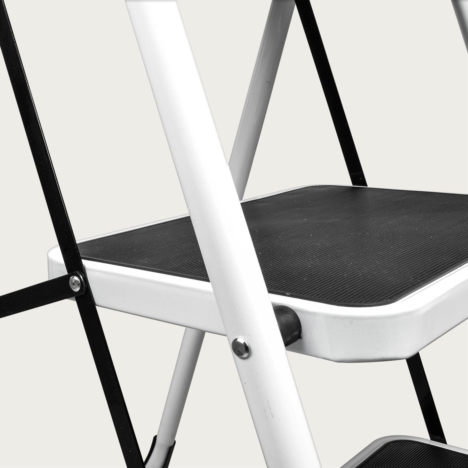La escalera plegable de 3 peldaños by Relan es un accesorio imprescindible para el hogar gracias a su practicidad y funcionalidad. Fabricada en acero y cubierta con caucho de alta calidad, esta escalera ofrece una construcción resistente y duradera y está equipada con características que garantizan la seguridad y comodidad del usuario.