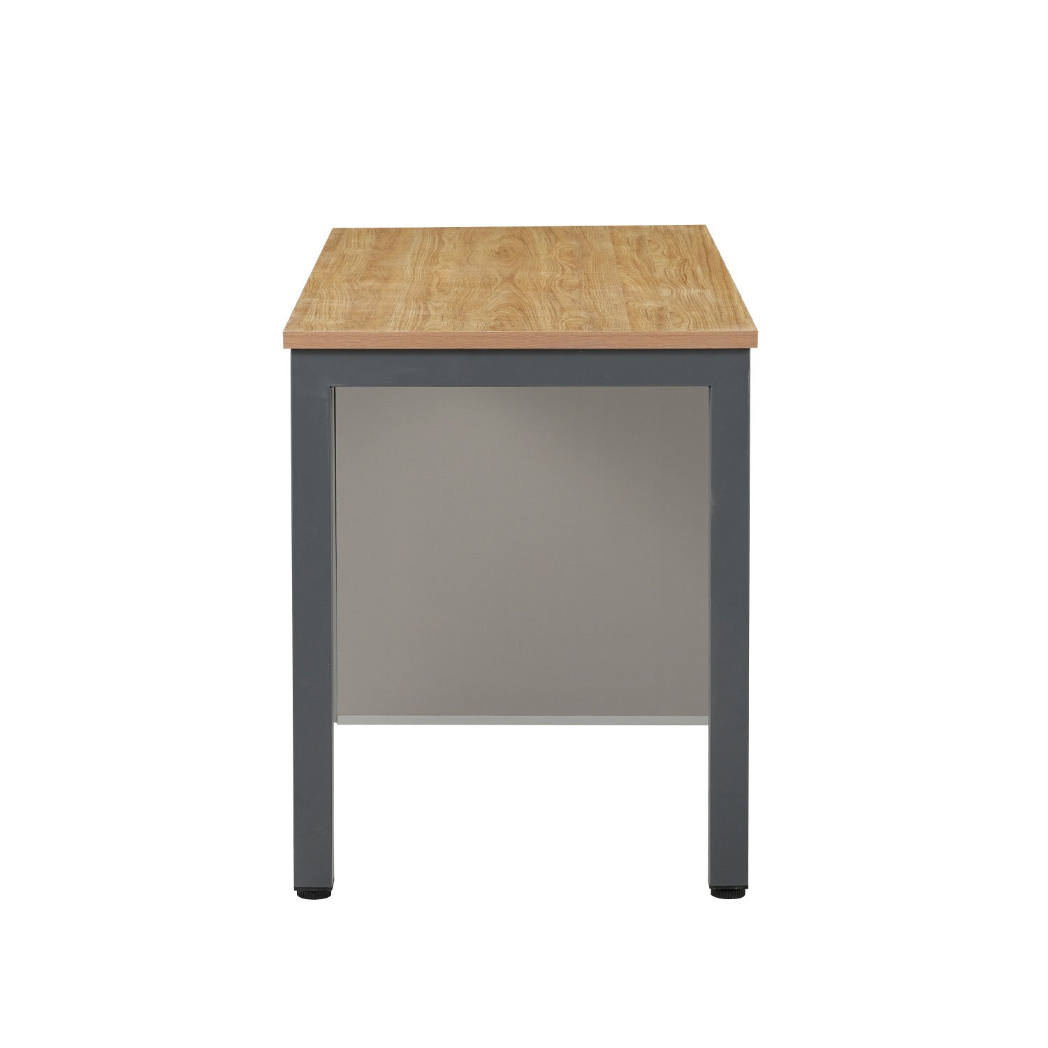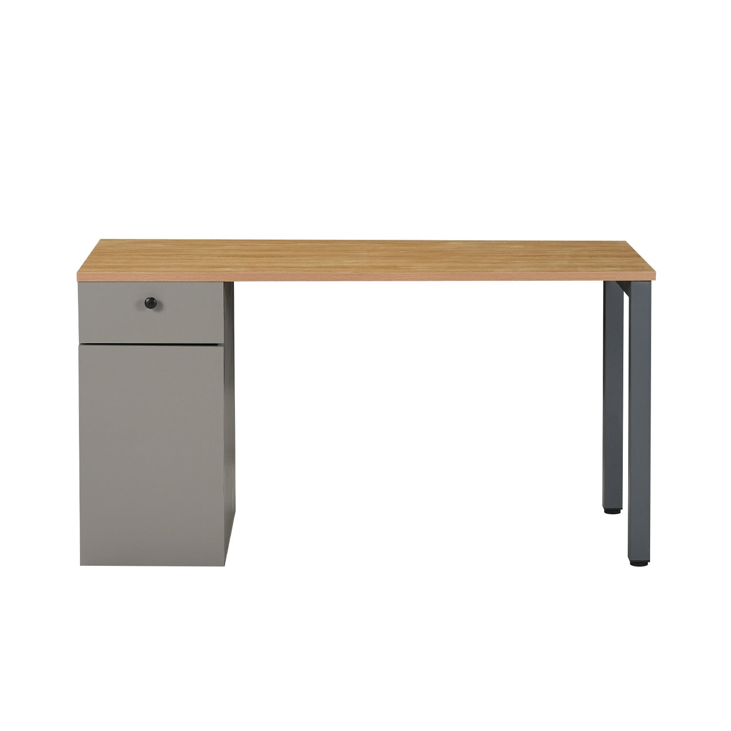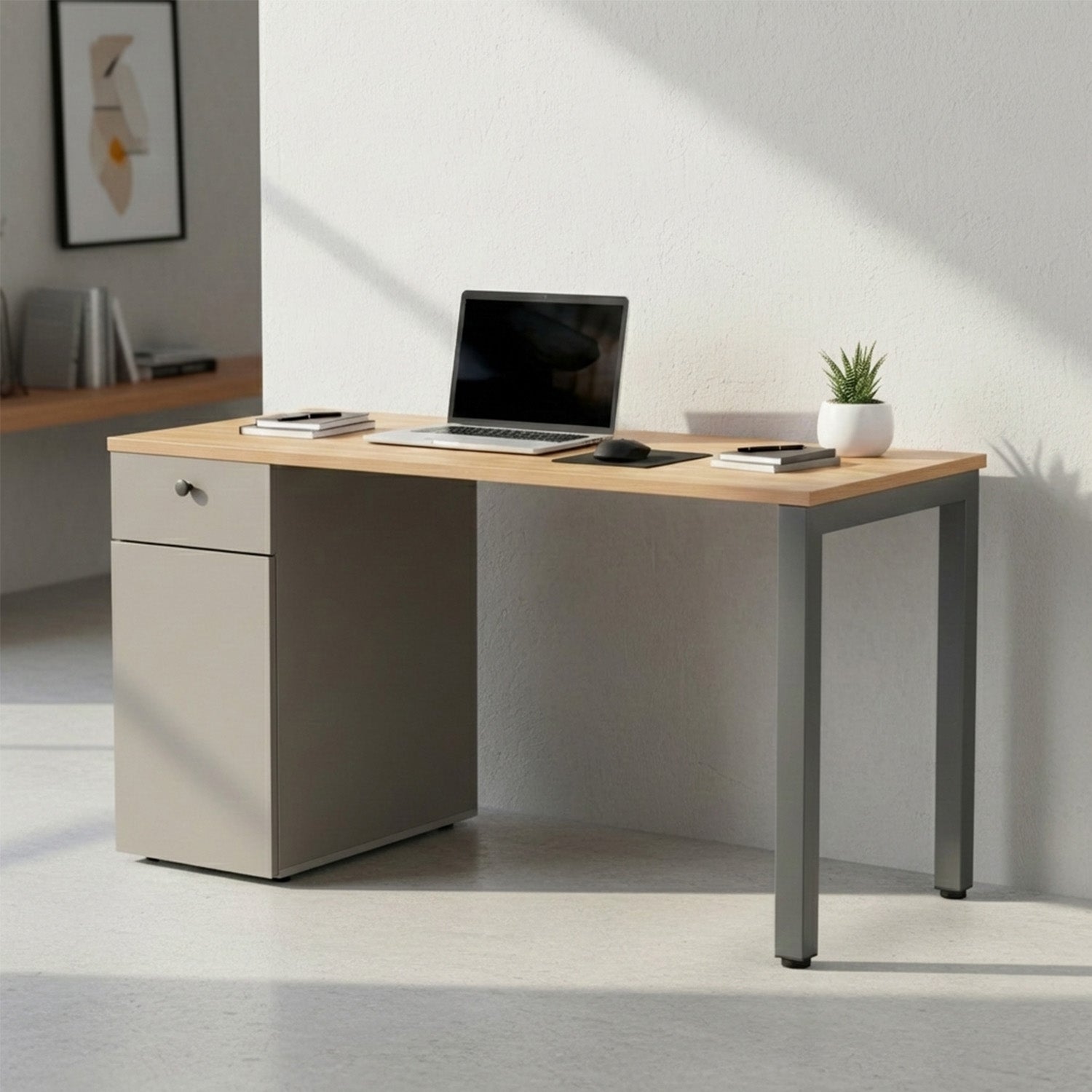 Dale a tu espacio de trabajo un upgrade con este escritorio funcional by Ergonomus. Su amplia superficie con acabado símil madera ofrece un aspecto cálido, mientras que su estructura metálica asegura estabilidad y resistencia. Incluye un práctico módulo lateral con espacio de guardado que te permite mantener todo organizado. Ideal para home office u oficina, es la combinación perfecta entre comodidad y practicidad.