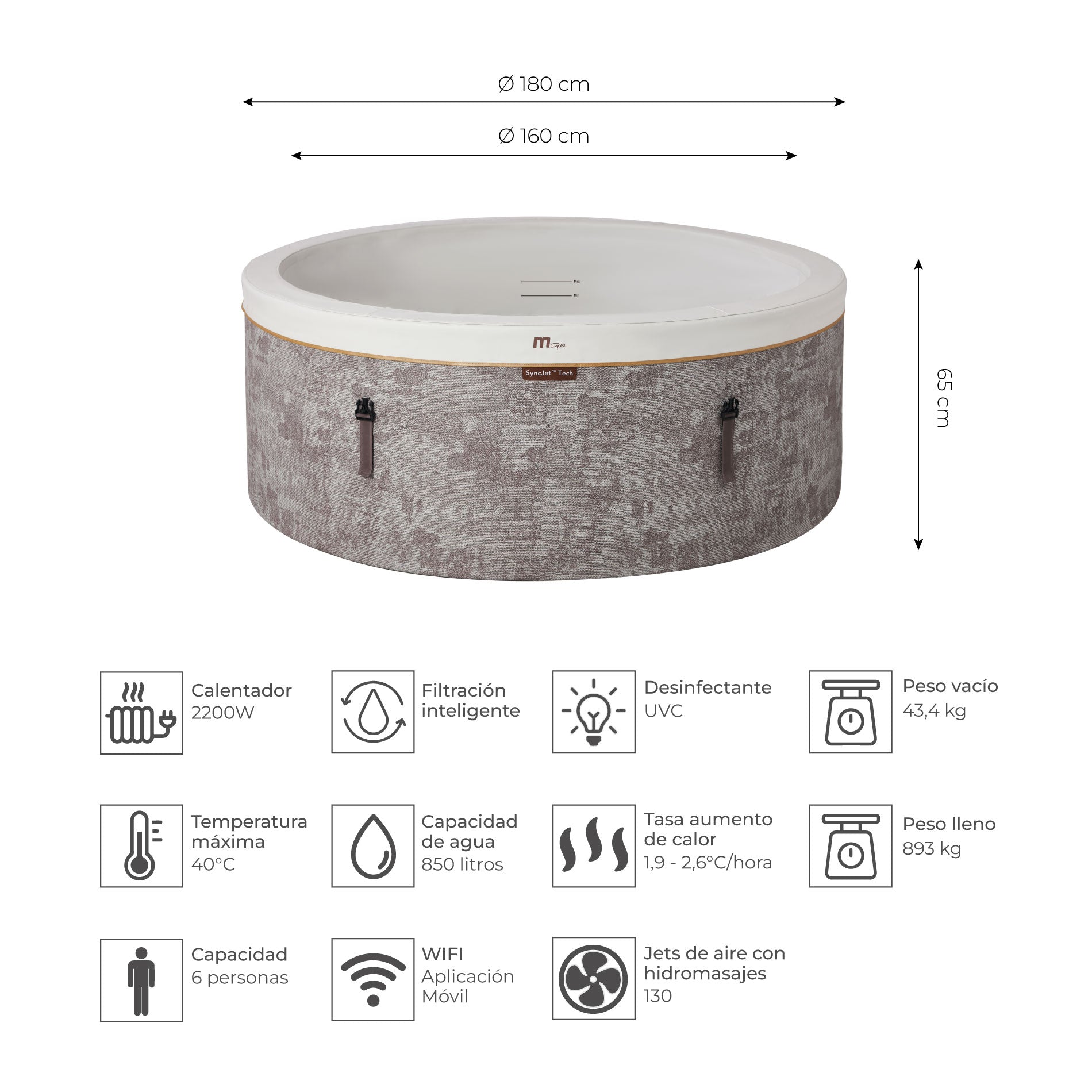 Conoce el Hot Tub Cocoon para 6 personas de la serie Verto by MSpa, un hot tub rígido super práctico y liviano. Su estructura está compuesta por placas encastrables que permiten que su armado sea muy sencillo. Cuenta con tecnología de calentamiento de alta eficiencia energética y sistema de burbujas envolvente, una combinación perfecta para tener tu momento de relajación ideal.
