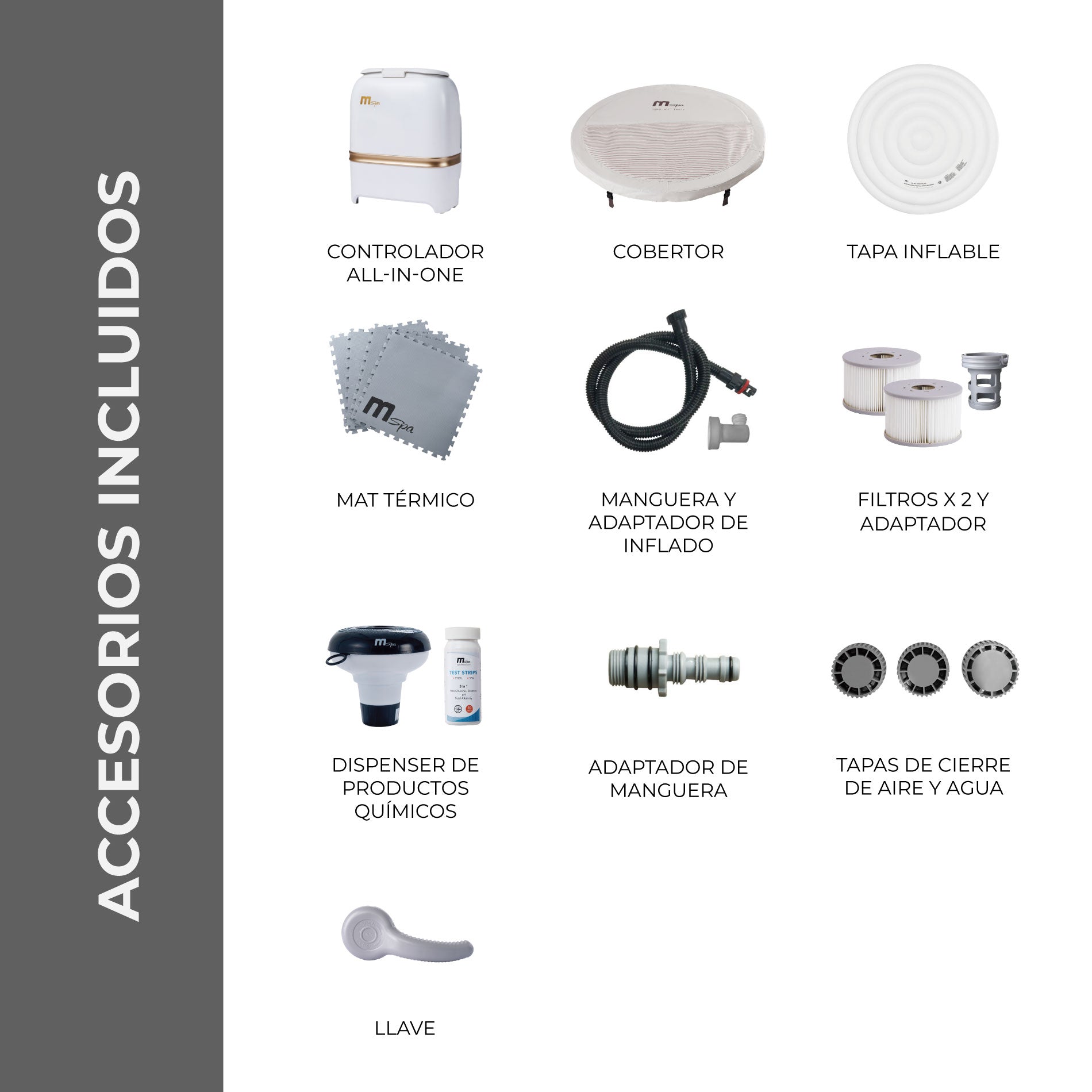 Podrás personalizar tu experiencia a través de su controlador compacto integrado o mediante la aplicación móvil de MSpa: puedes descargarla AQUÍ