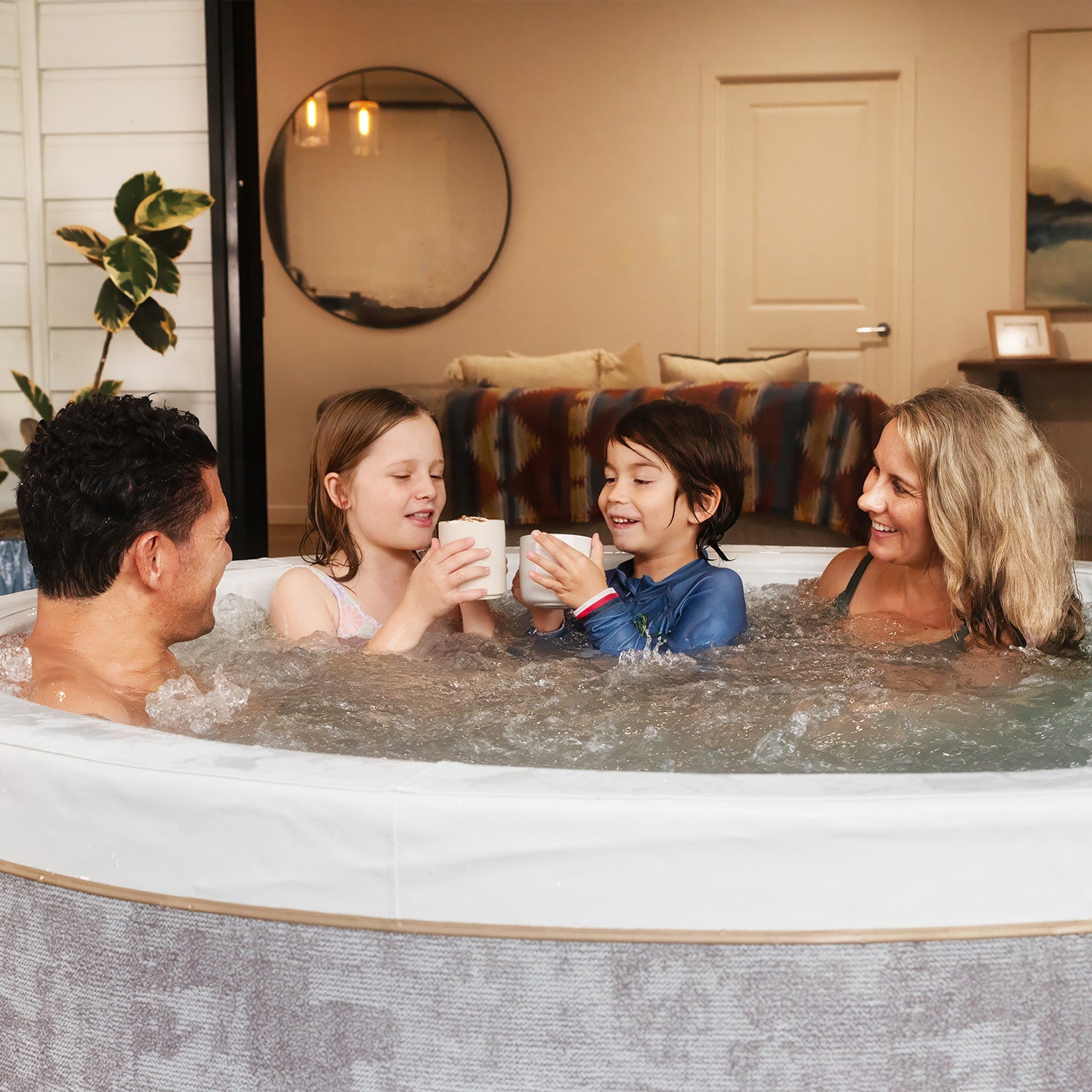 - Fácil instalación: sus paneles de espuma pre-ranurados permiten que el armado sea simple y sin esfuerzo. Con solo dos personas y unos 15 minutos, tu hot tub queda listo sin herramientas y sin complicaciones