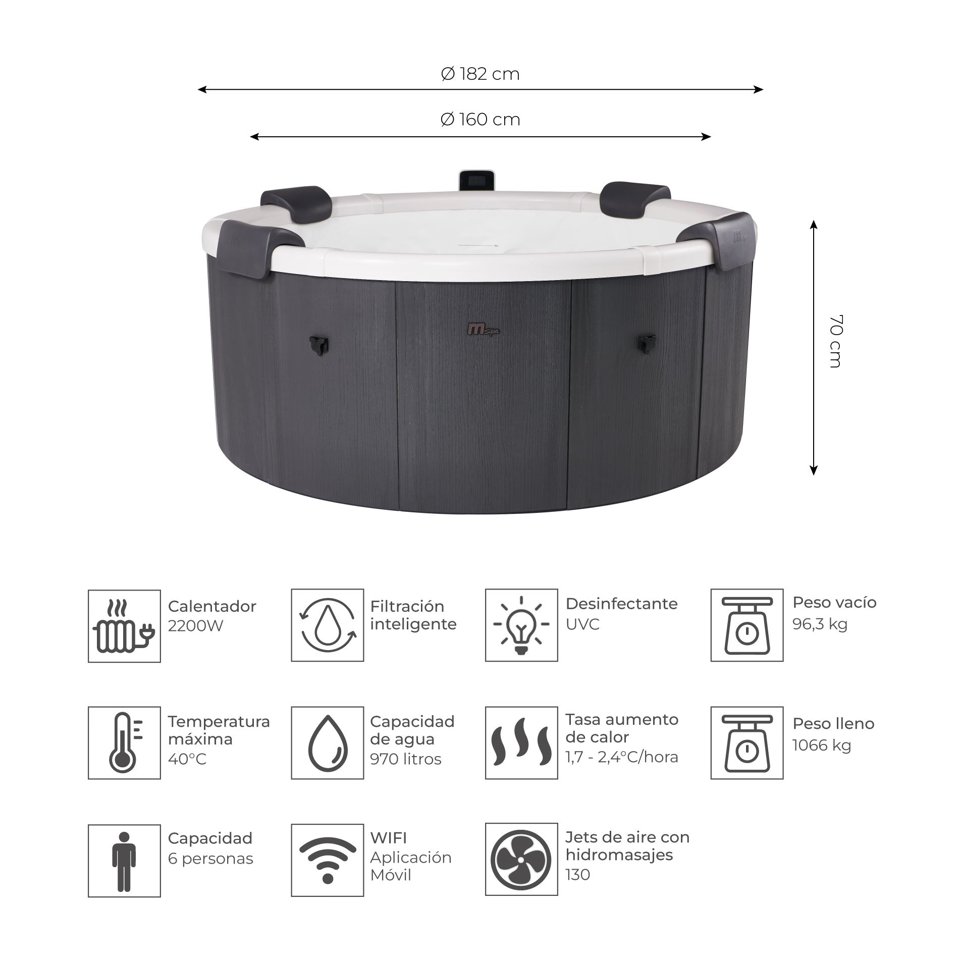 - Motor Whispa™: gracias al motor de alta tecnología de Mspa podrás relajarte al máximo y disfrutar de una experiencia inmersiva sin ruidos molestos