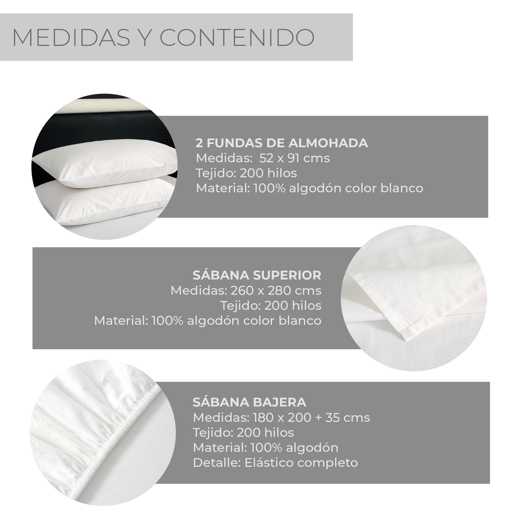 Juego de Sábanas 100% Algodón King 200 Hilos