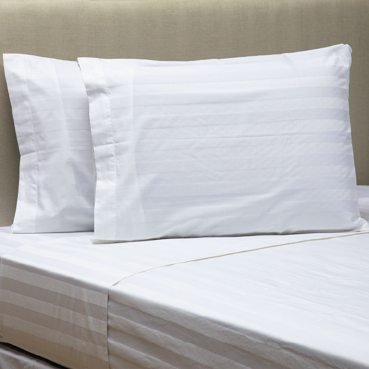 Juego de Sábanas Blancas Rayas Queen 600 Hilos