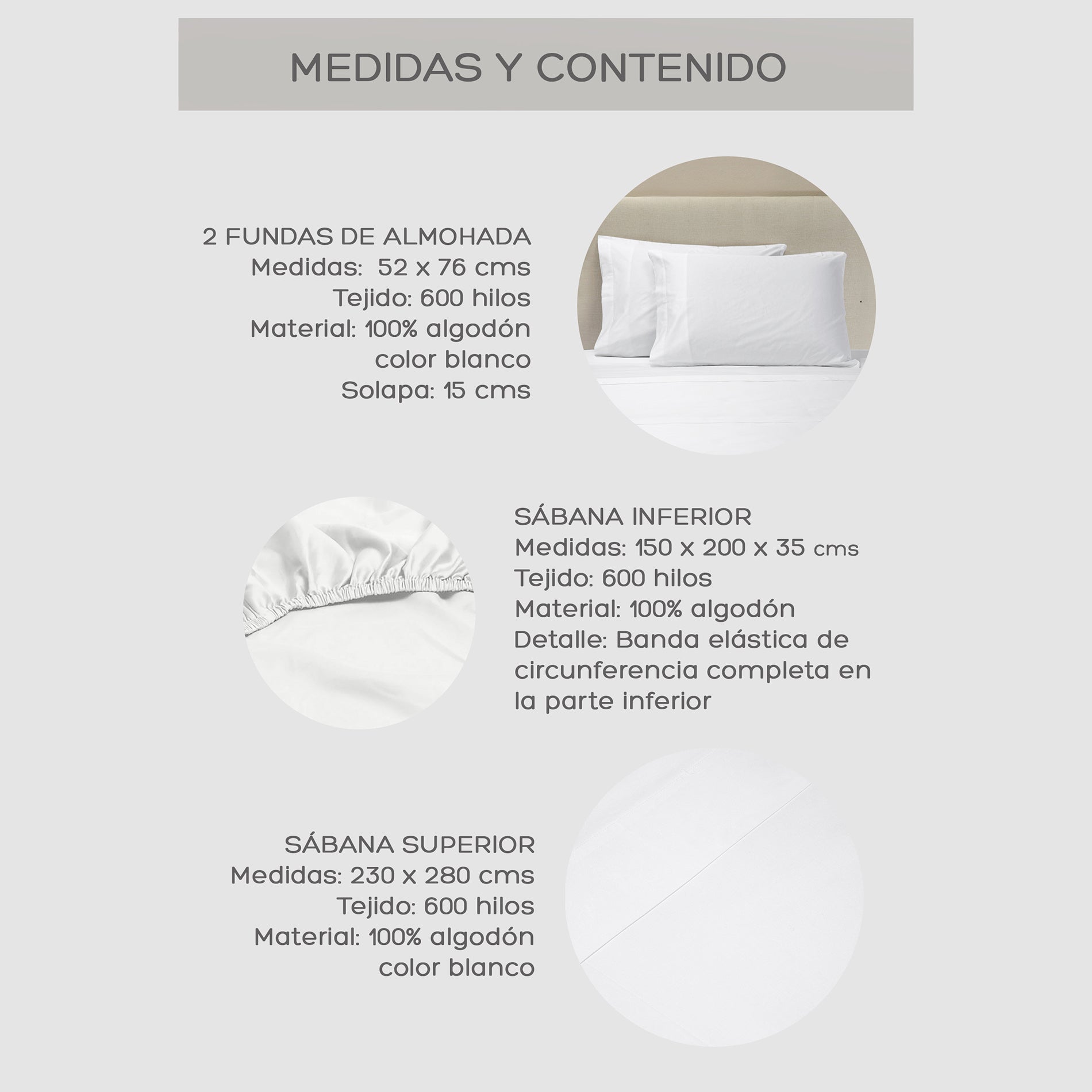 - Tejido: 600 hilos