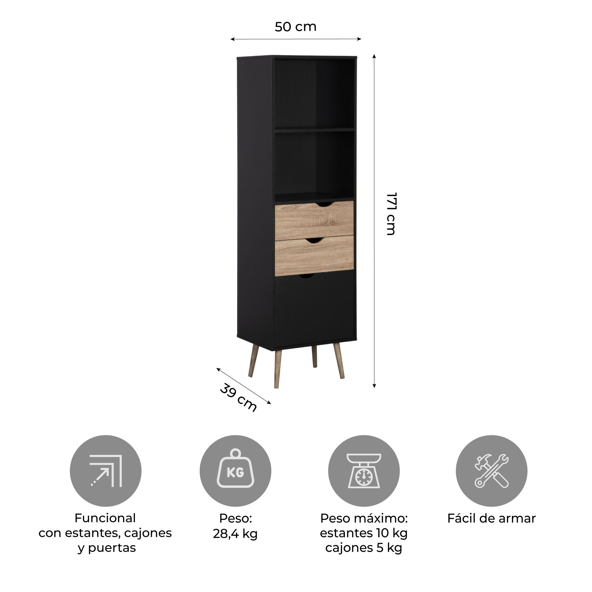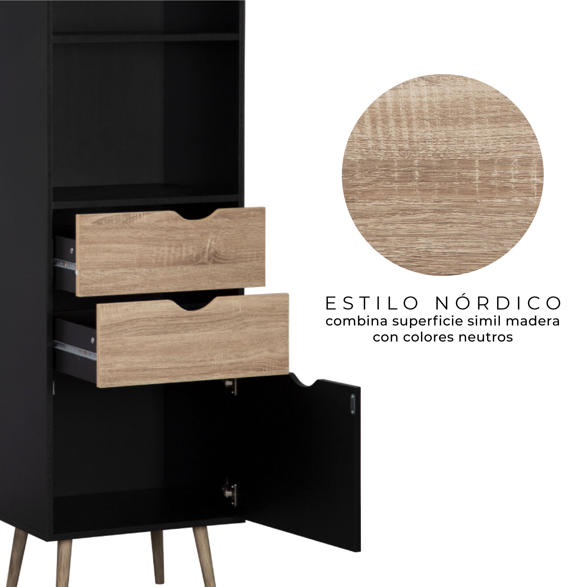 Crea una pequeña biblioteca o mantén tus espacios decorados y organizados con el práctico Librero Vertical GOTEMBURGO BLACK by Top Living. De estilo nórdico y con su diseño minimalista en tonos madera clara y negro, podrás colocarlo en cualquier parte de tu hogar, ocupando muy poco espacio.