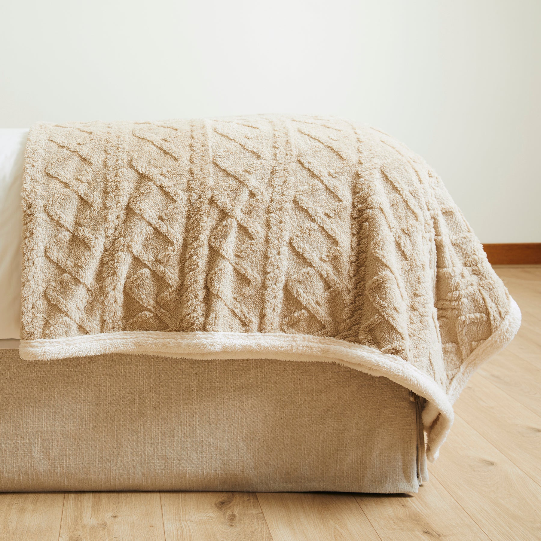 Manta Sherpa Jacquard Beige 1,5 Plaza