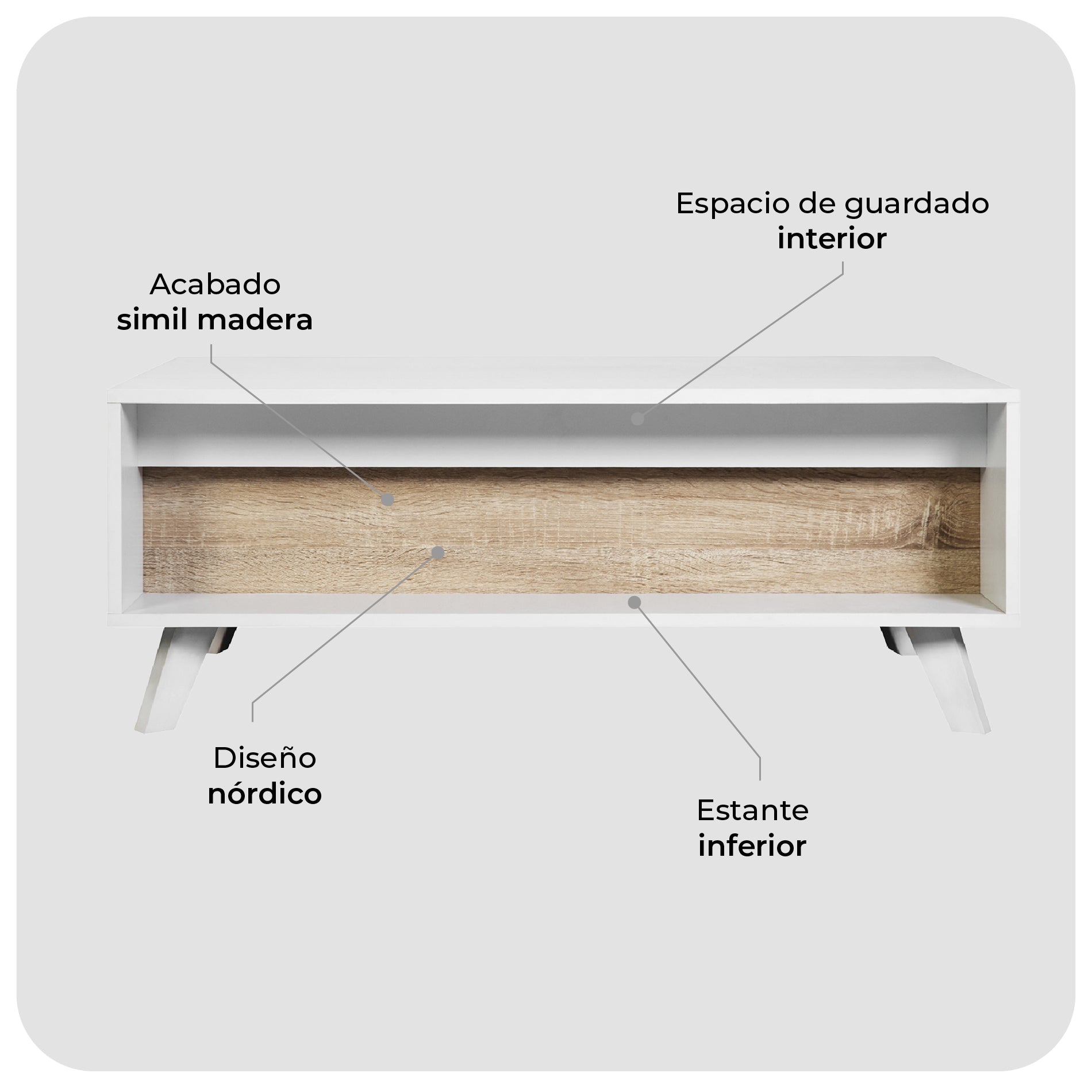- Cuenta con amplio espacio de almacenamiento interno, perfecto para organizar controles, libros, mantas u objetos decorativos.
