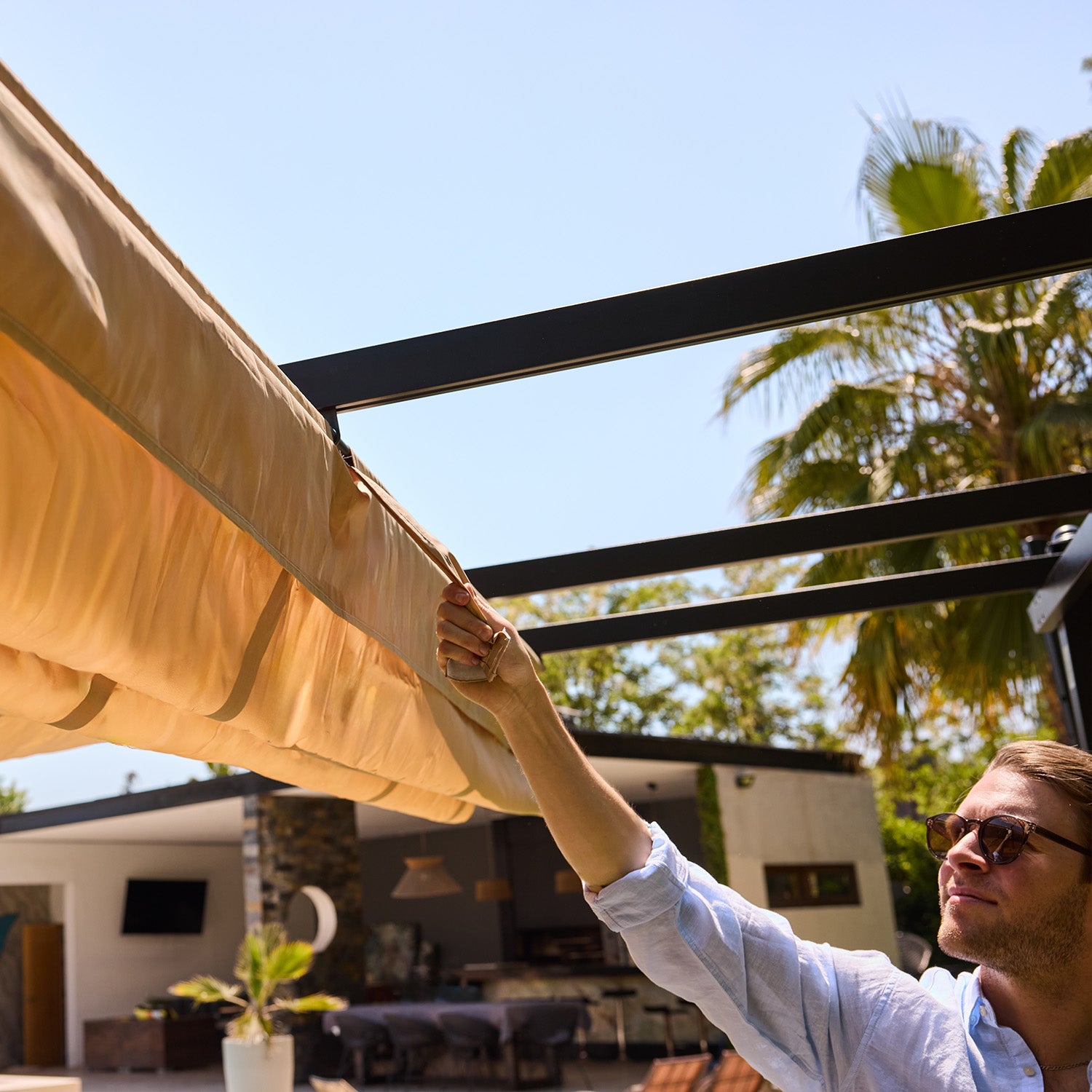 Ideal para jardines y terrazas, es muy fácil de ensamblar e instalar. El toldo es waterproof y resistente a la intemperie, lo que habilitará que disfrutes del aire libre aún con una lluvia ligera.