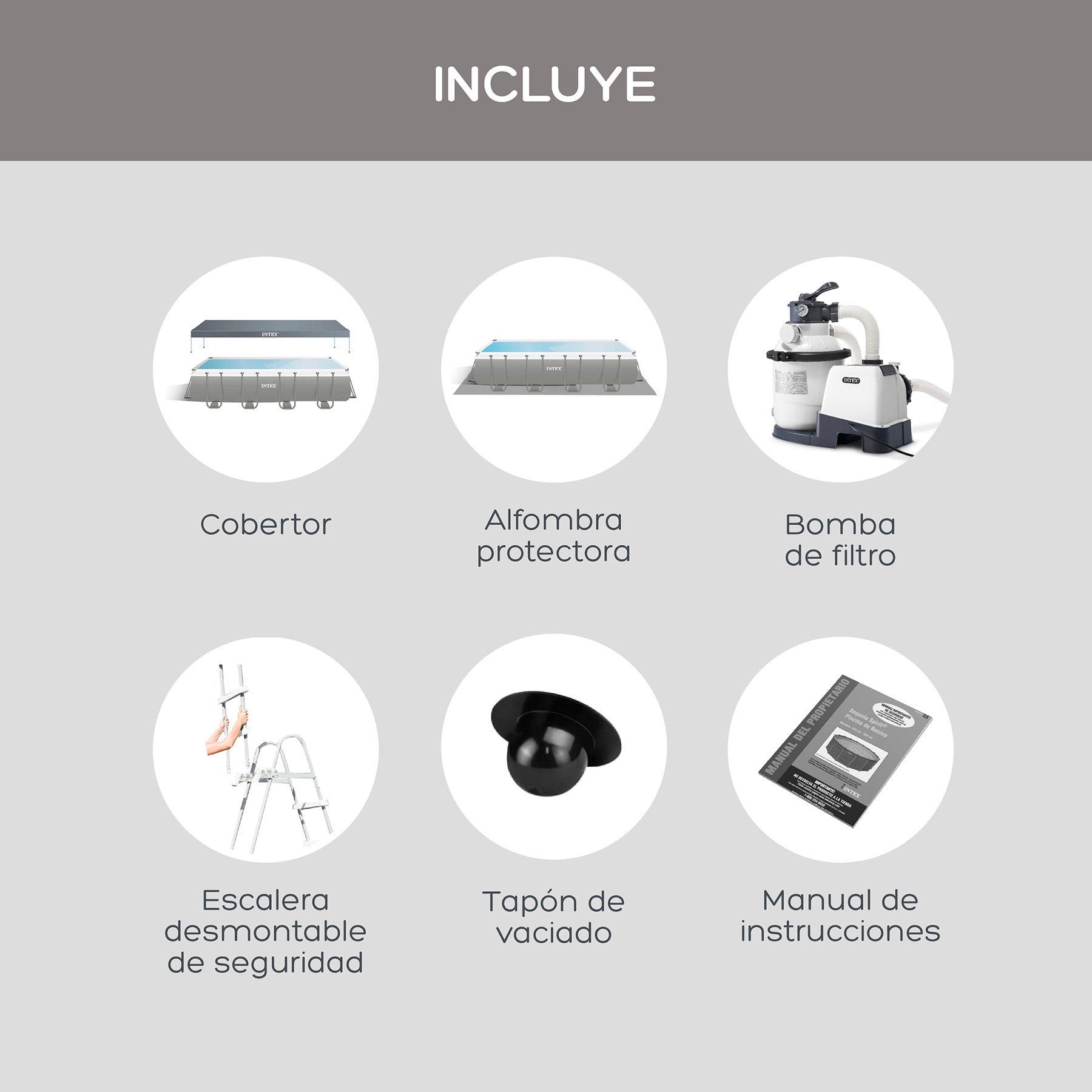 Disfruta del verano en la piscina con la Piscina Estructural INTEX Ultra Xtr Rectangular de 549 Cm. Es desmontable y se caracteriza por la robustez que le da su armazón de tubos de acero protegidos contra la oxidación. Su lona triple capa está fabricada en PVC-Poliéster super resistente de primera calidad. Con una capacidad de 17.203 Lts, cuenta con el exclusivo sistema de filtración Hydro Aeration Technology que mejora la circulación consiguiendo un agua de mayor calidad y pureza.