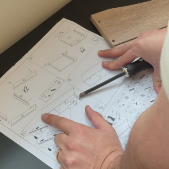 - Materiales: Tablero de partículas con papel / Patas de madera maciza