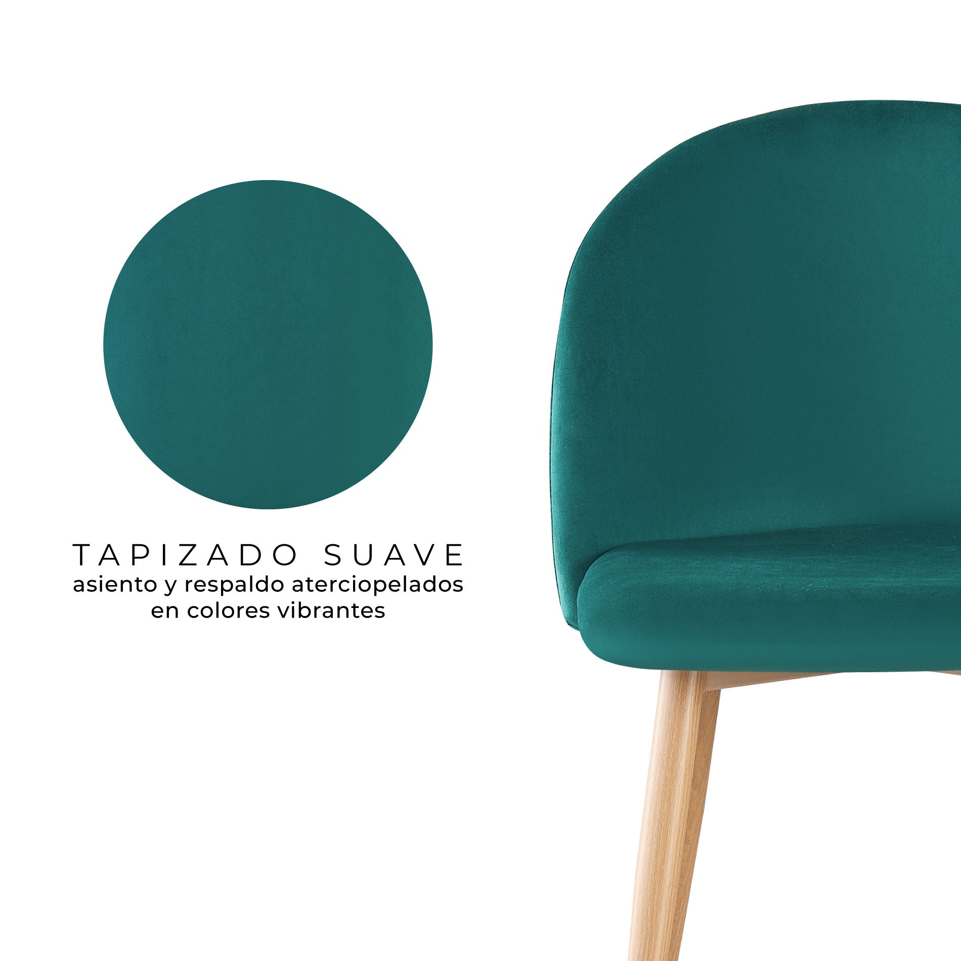 El Set de 4 Sillas de Comedor Dinka Oxford es justo lo que necesitas para darle un toque moderno y acogedor a tus espacios. Tienen asiento y respaldo acolchados con tapizado aterciopelado súper suave para brindarte mayor comodidad. Además, su estructura de acero resistente y patas en color simil madera, combinan estilo y durabilidad a la perfección. Son fáciles de armar y se ven increíbles en cualquier ambiente: comedor, sala, oficina, ¡donde quieras!