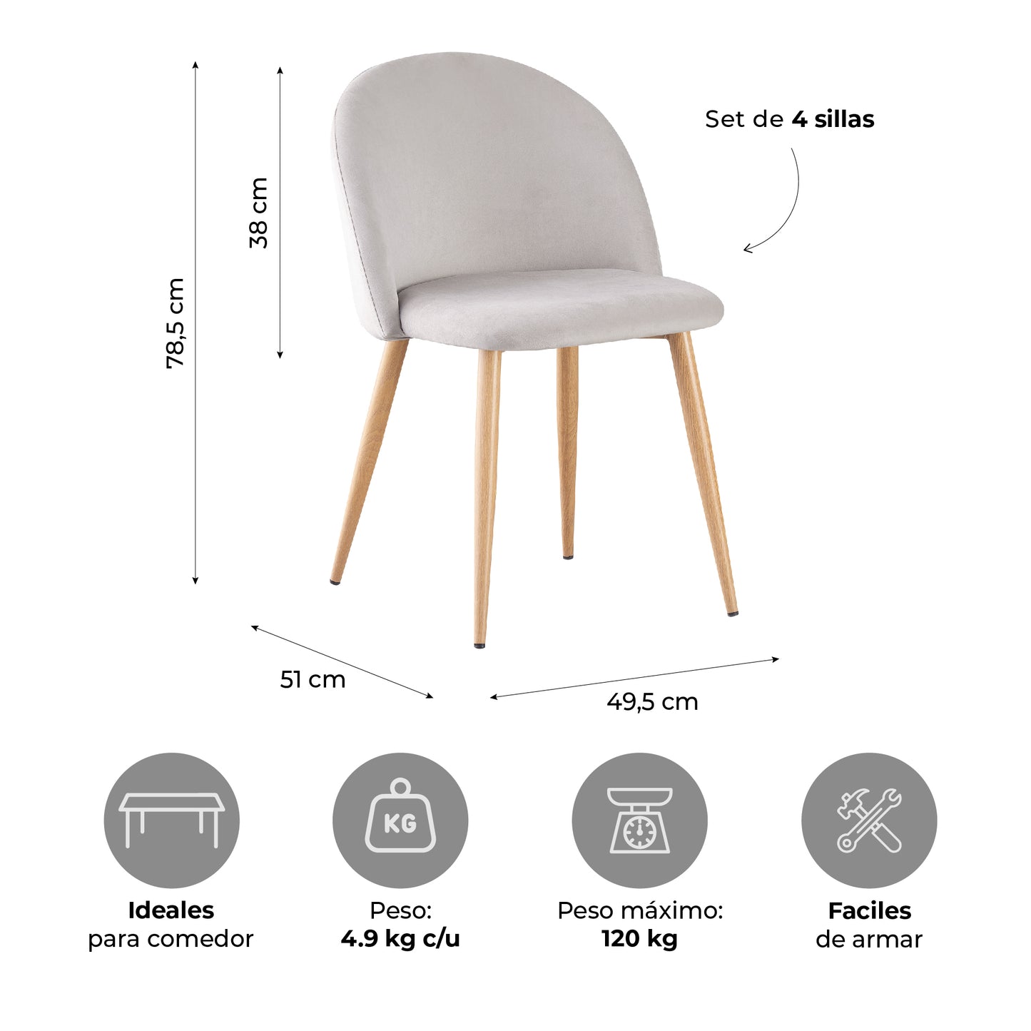 El Set de 4 Sillas de Comedor DINKA CIELO by Top Living es justo lo que necesitas para darle un toque moderno y acogedor a tus espacios. Tienen asiento y respaldo acolchados con tapizado aterciopelado súper suave que te hará sentir como en las nubes. Además, su diseño ergonómico está pensado para que te sientas comodamente mientras disfrutas en el comedor de tu casa.