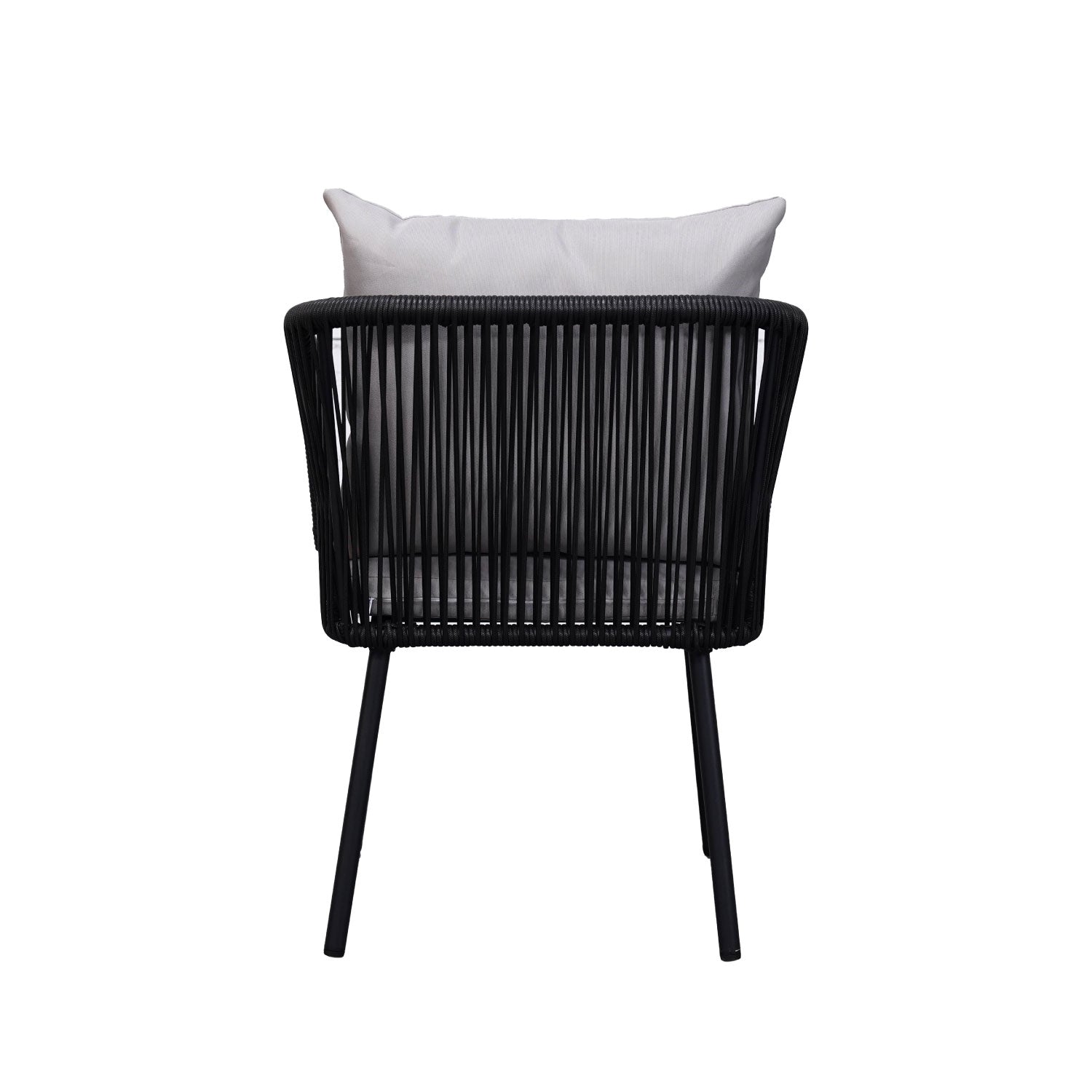 Estilo en tendencia, tanto el respaldo como los apoyabrazos de las sillas cuentan con un entramado de ratán sintético