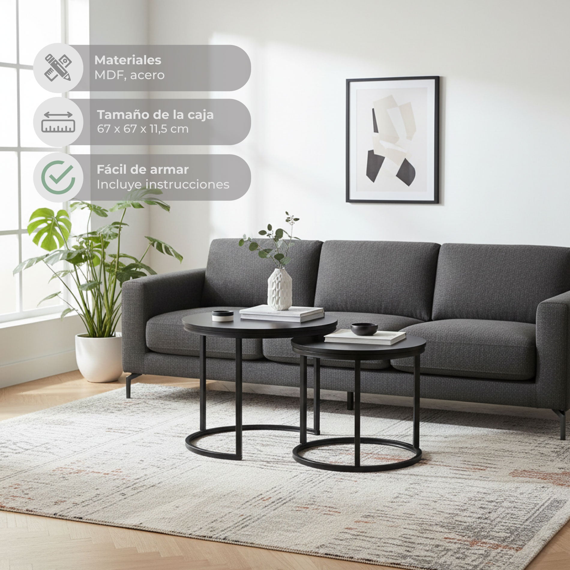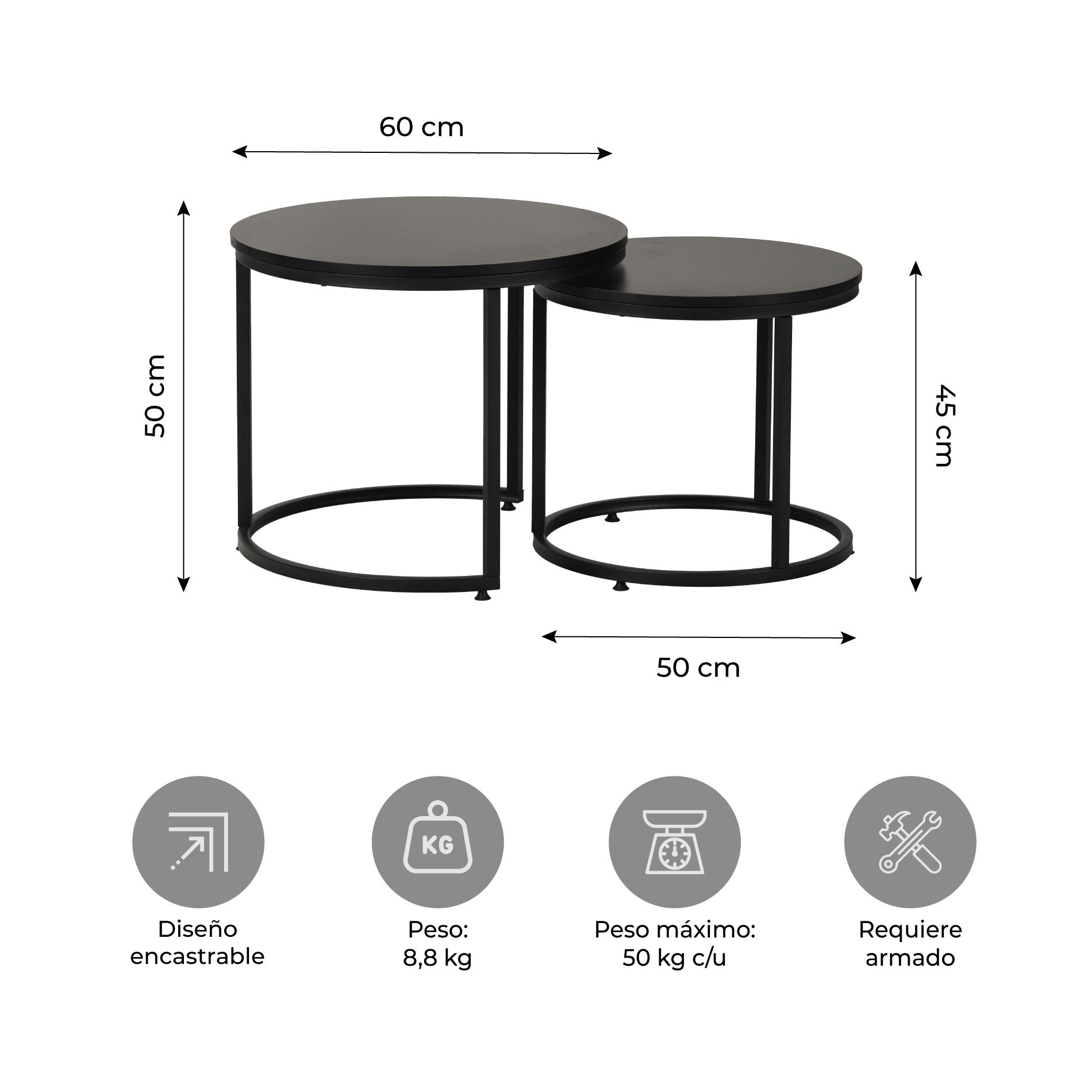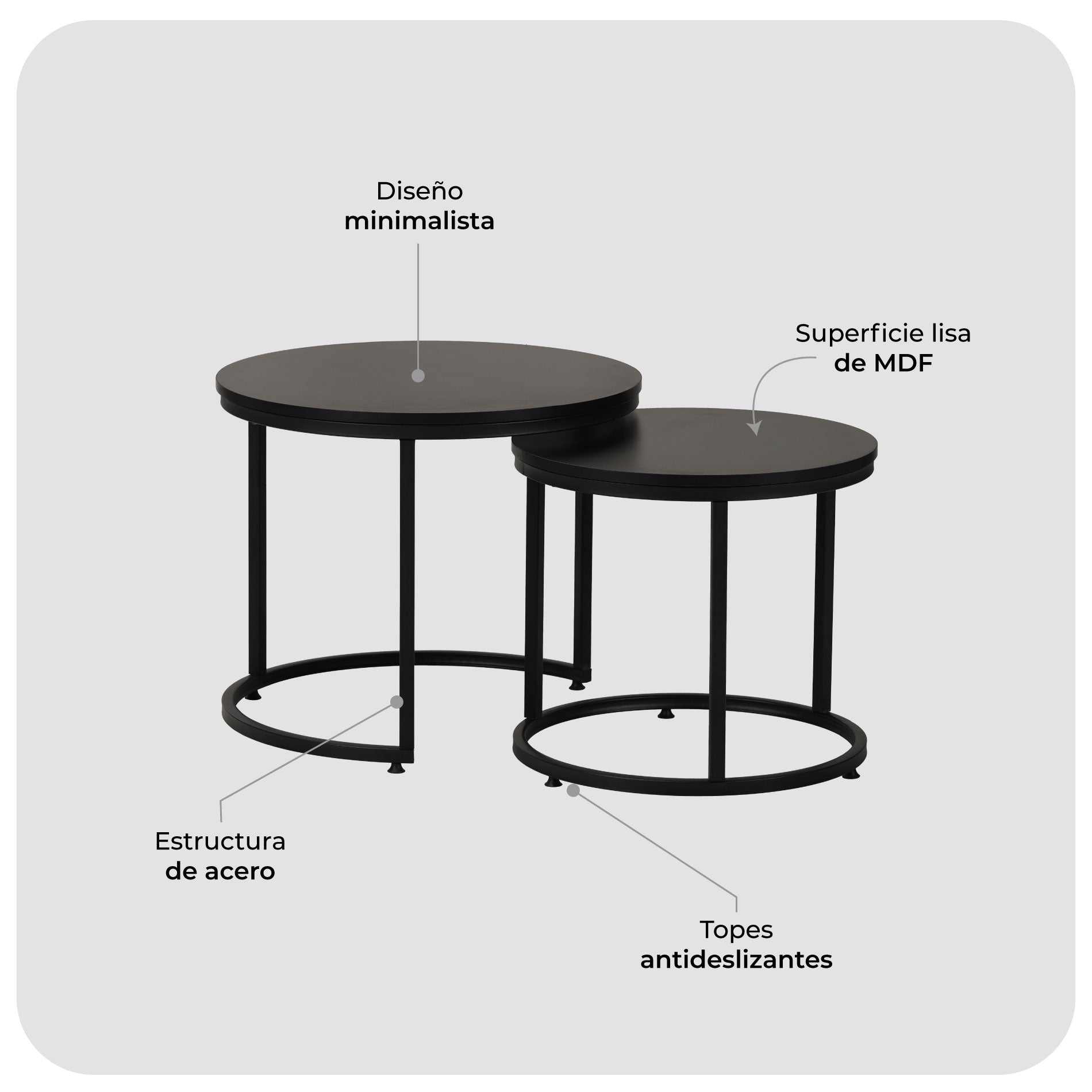 Suma diseño y funcionalidad a tu espacio con el Set de Mesas de Centro Core de la Línea Iron. Su estructura fusiona metal y madera negra para aportar un look moderno a tu espacio. Perfectas para livings, rincones de lectura o como apoyo lateral.