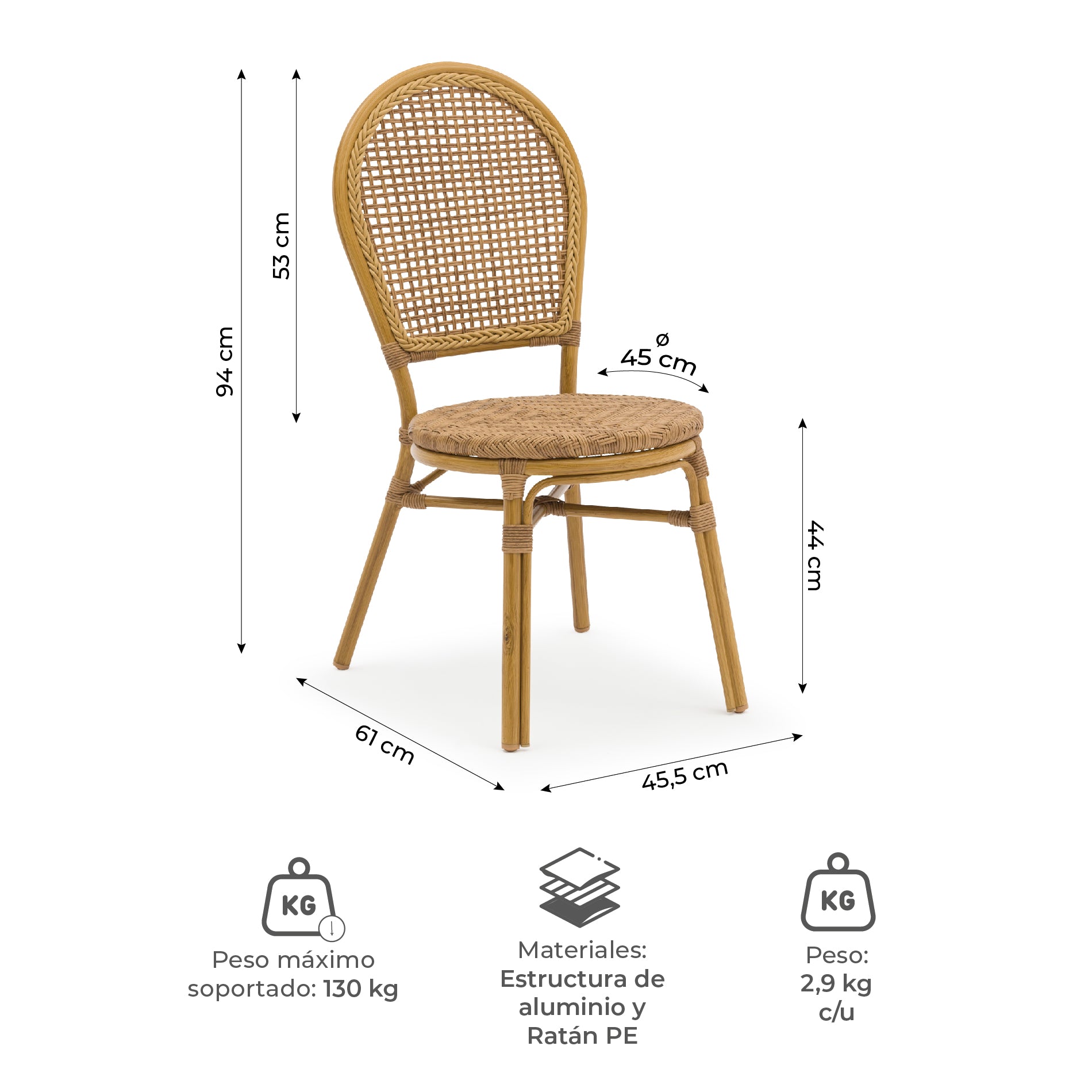 - Materiales: 50% estructura de aluminio + 50% Rattan PE