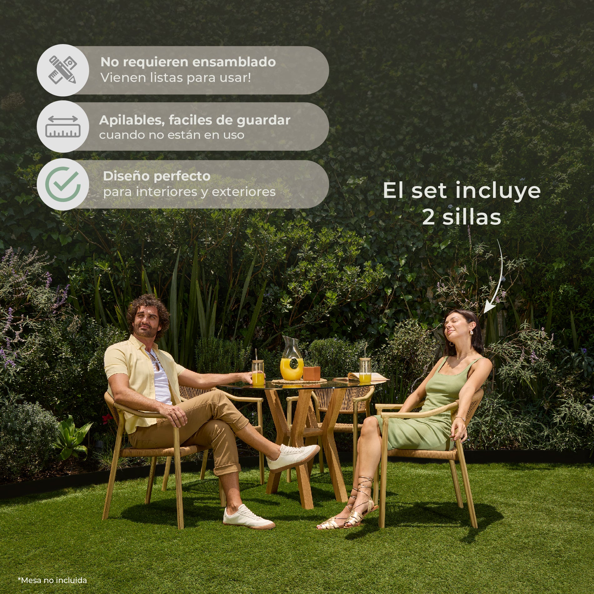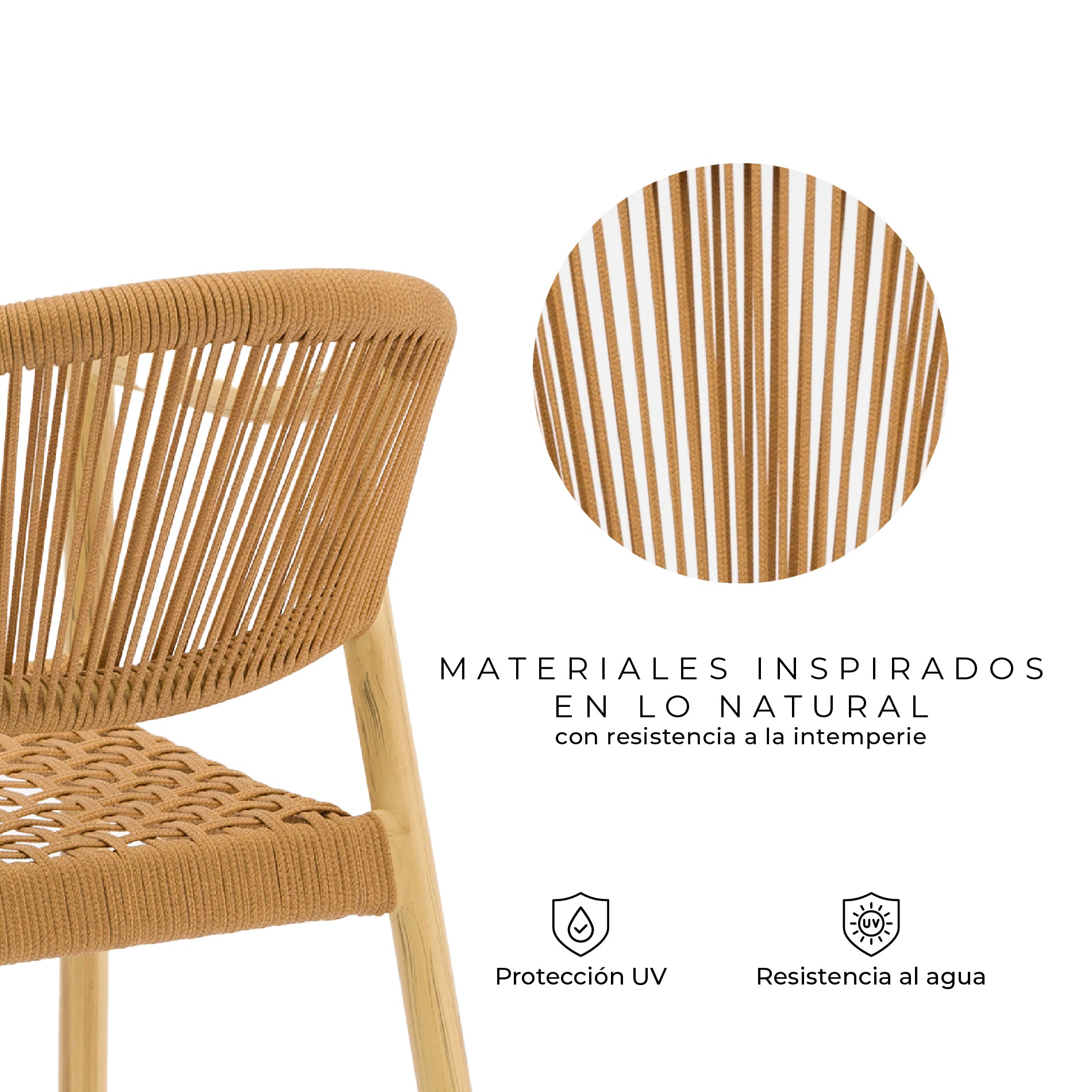 - Aptas exterior, pero también perfectas para interior: sus materiales son resistentes a la intemperie, cuentan con protección UV y resistencia al agua, así que puedes usarlas tanto en el patio, la terraza o el jardín, como en el comedor o la sala de estar.