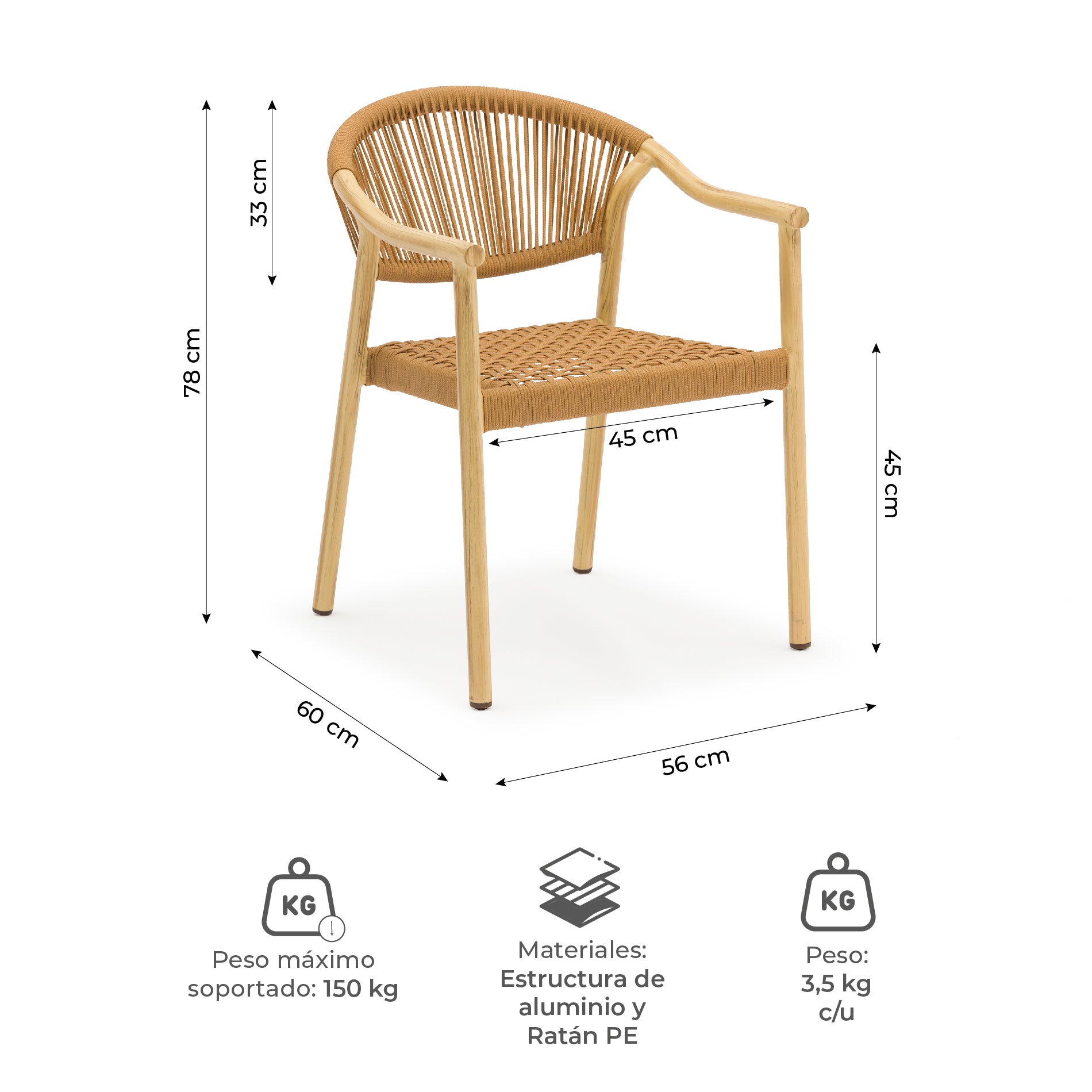 - Materiales: 70% estructura de aluminio + 30% Rattan PE