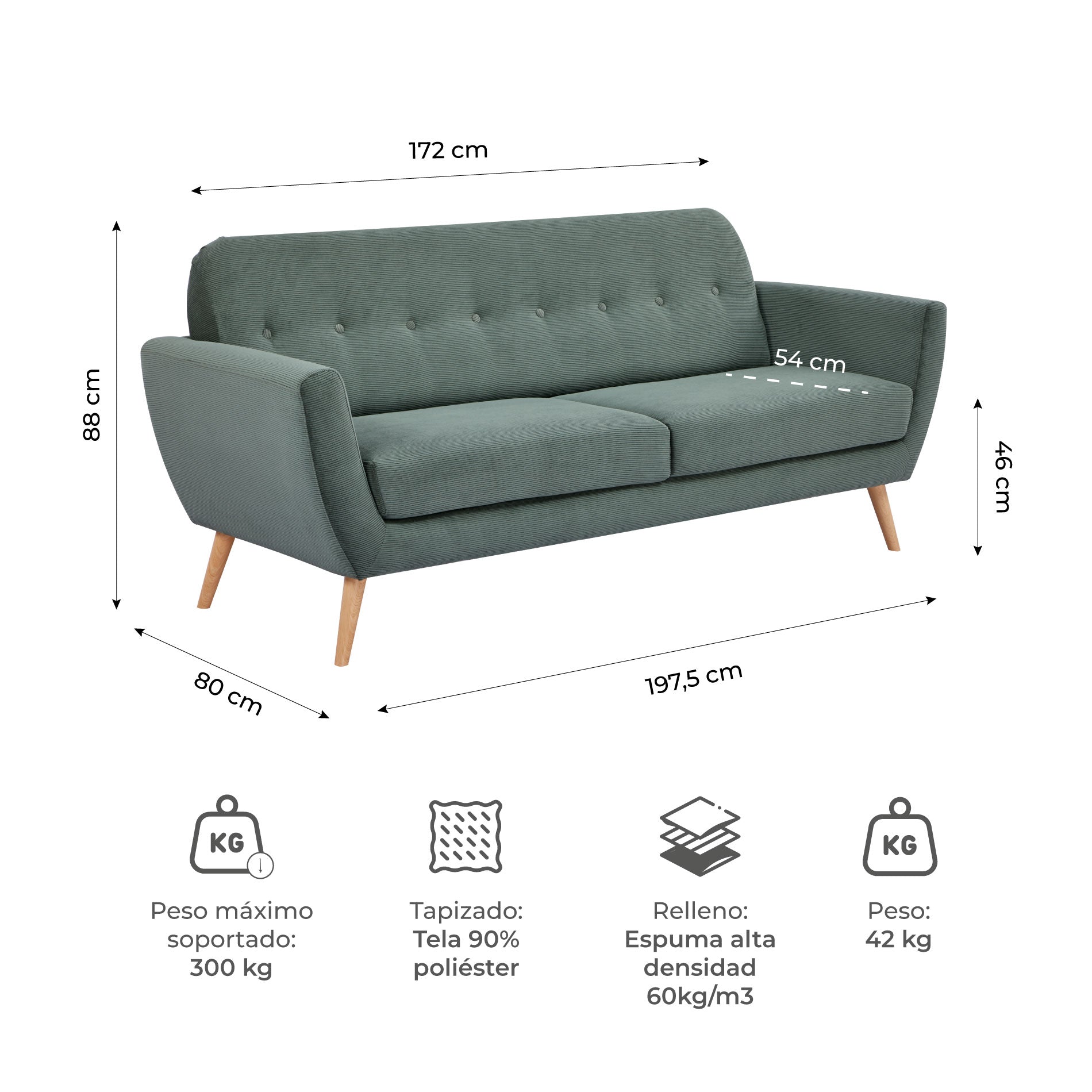 - Medidas del sofá: 197,5 cm largo x 80 cm profundidad x 88 cm alto