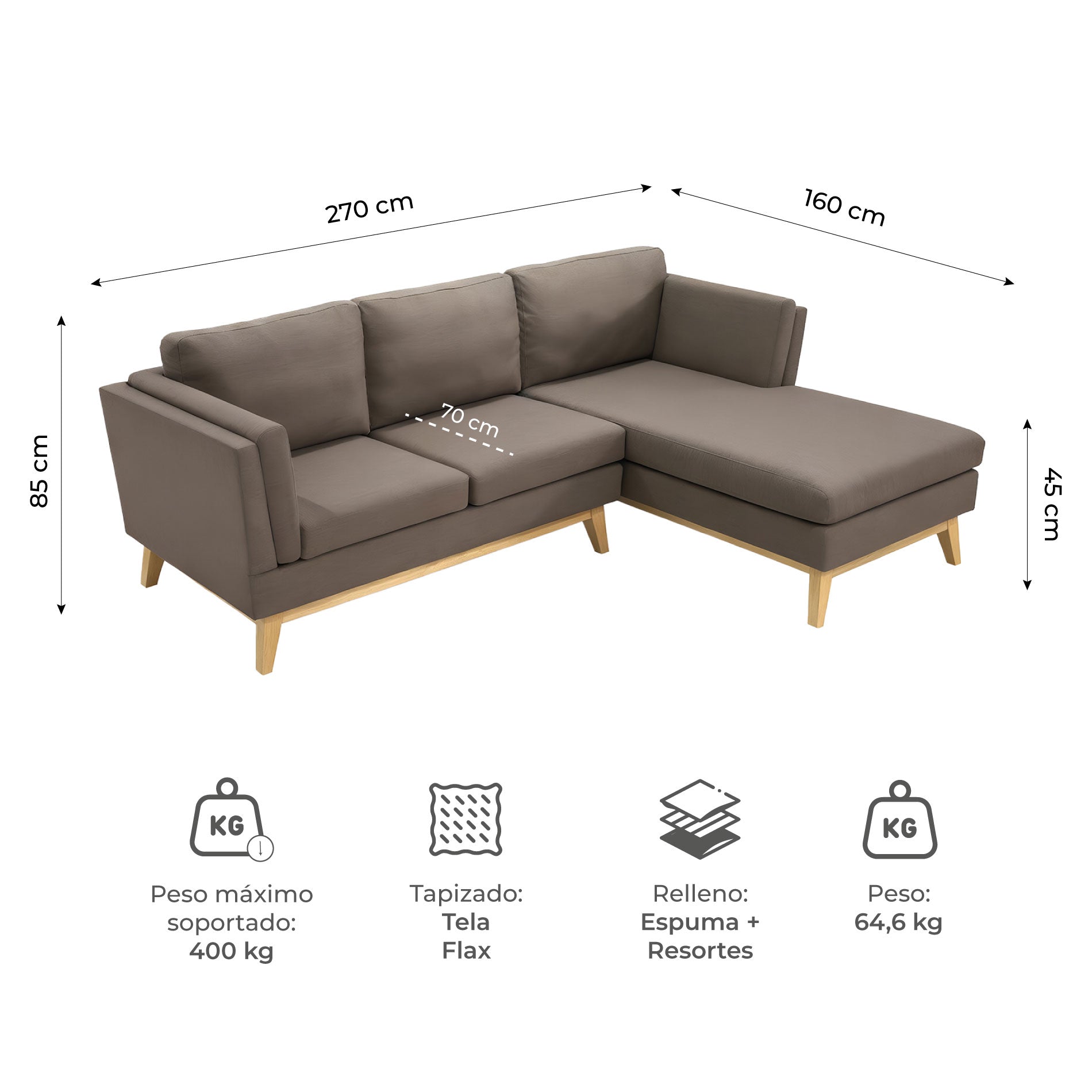 - Medidas sofá: 270 cm largo x 160 cm profundidad x 85 cm alto