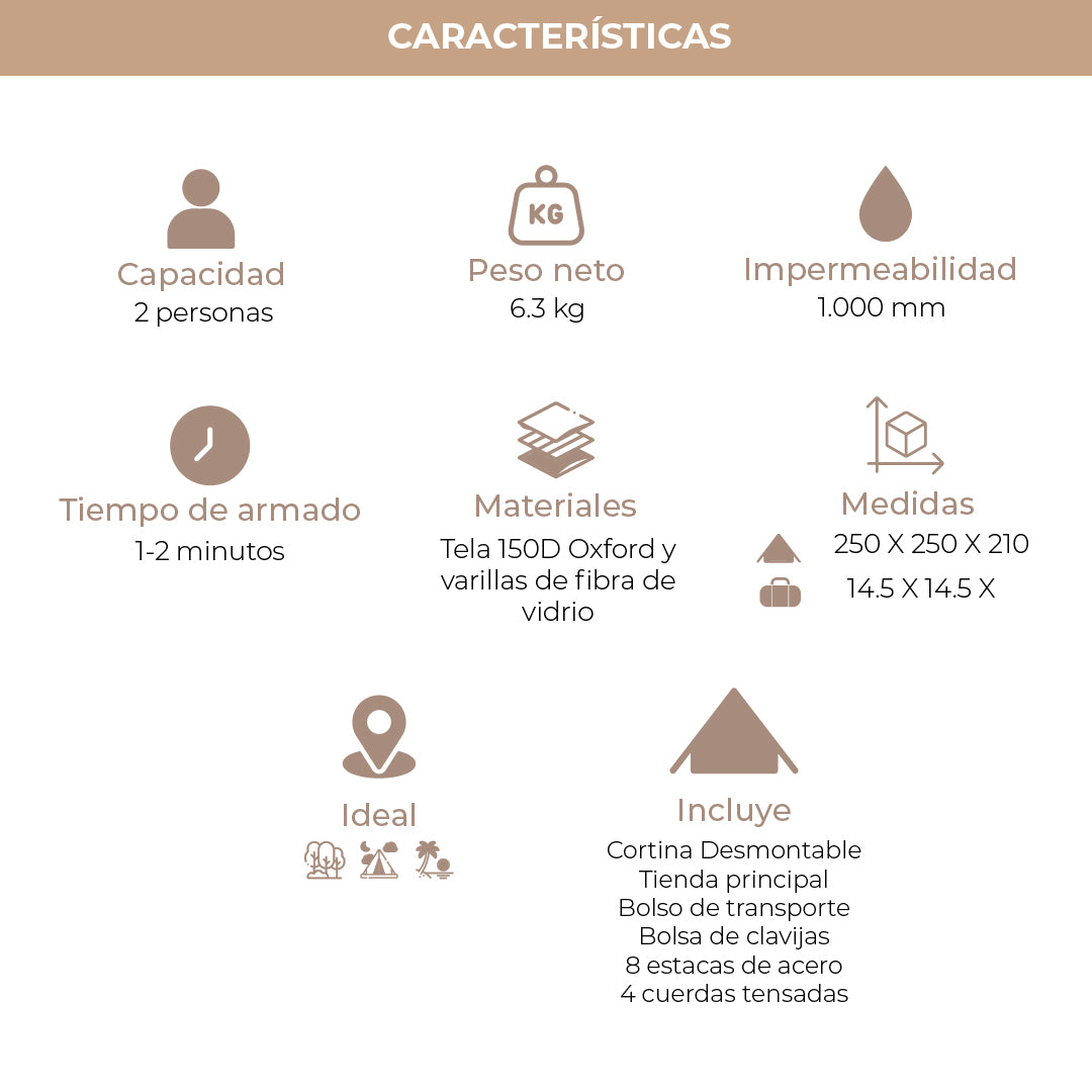 - Materiales: Tela 150D OXFORD PU 1000mm y varillas de fibra de vidrio
